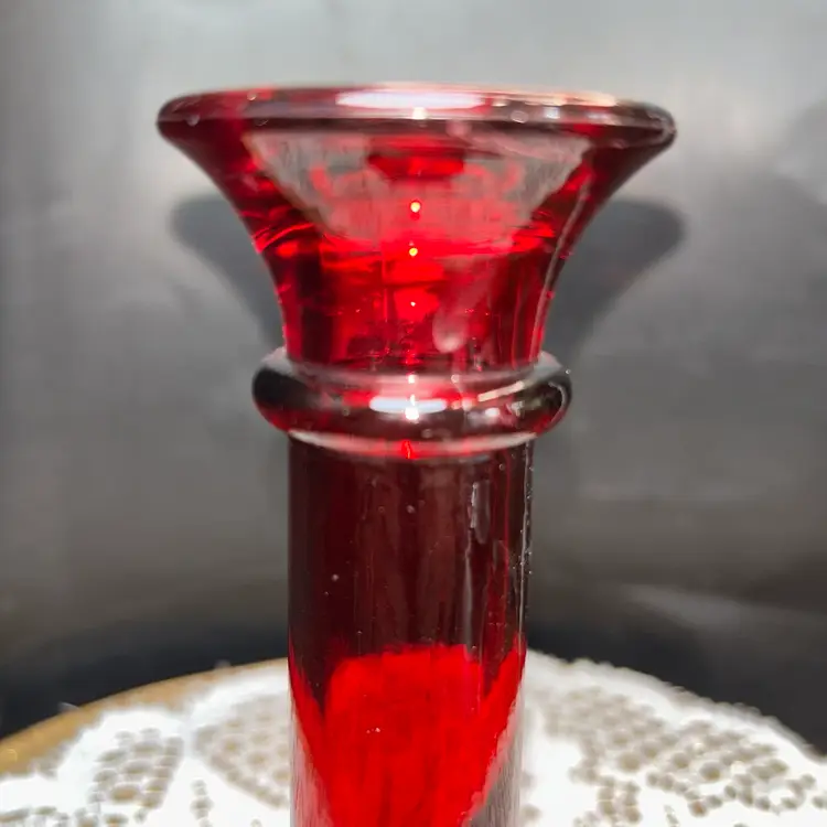 Except condition. No chips or cracks. 7” tall, 2” diameter across top, with opening 0.75” in diameter. Base is 3” in diameter with a rope design outer edge, and marked with the number 2.
