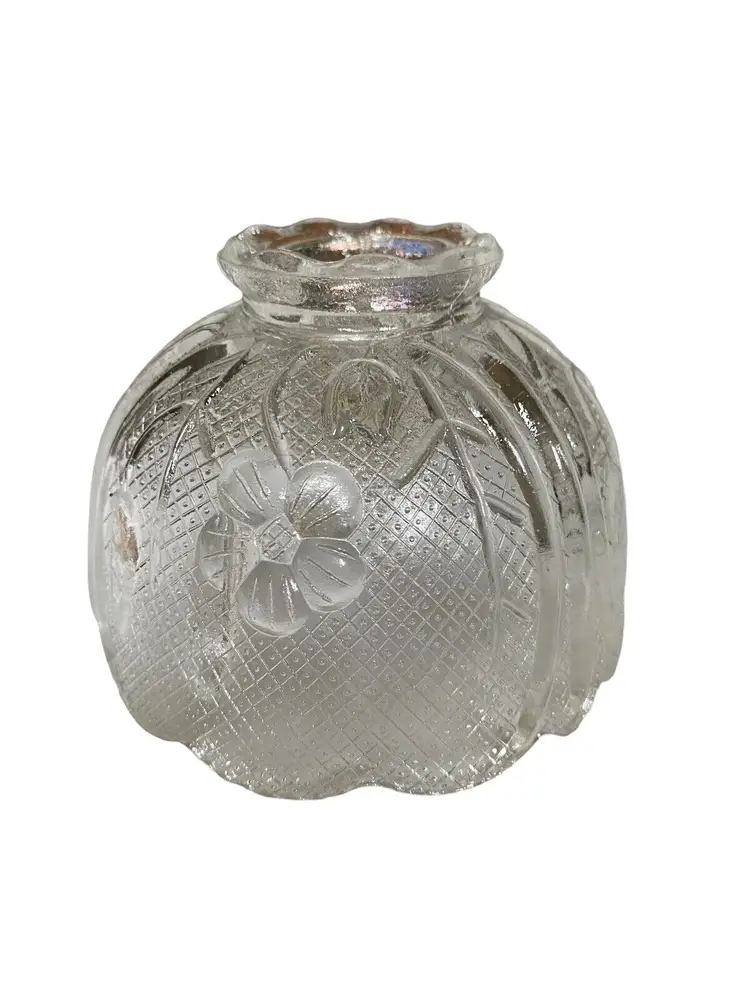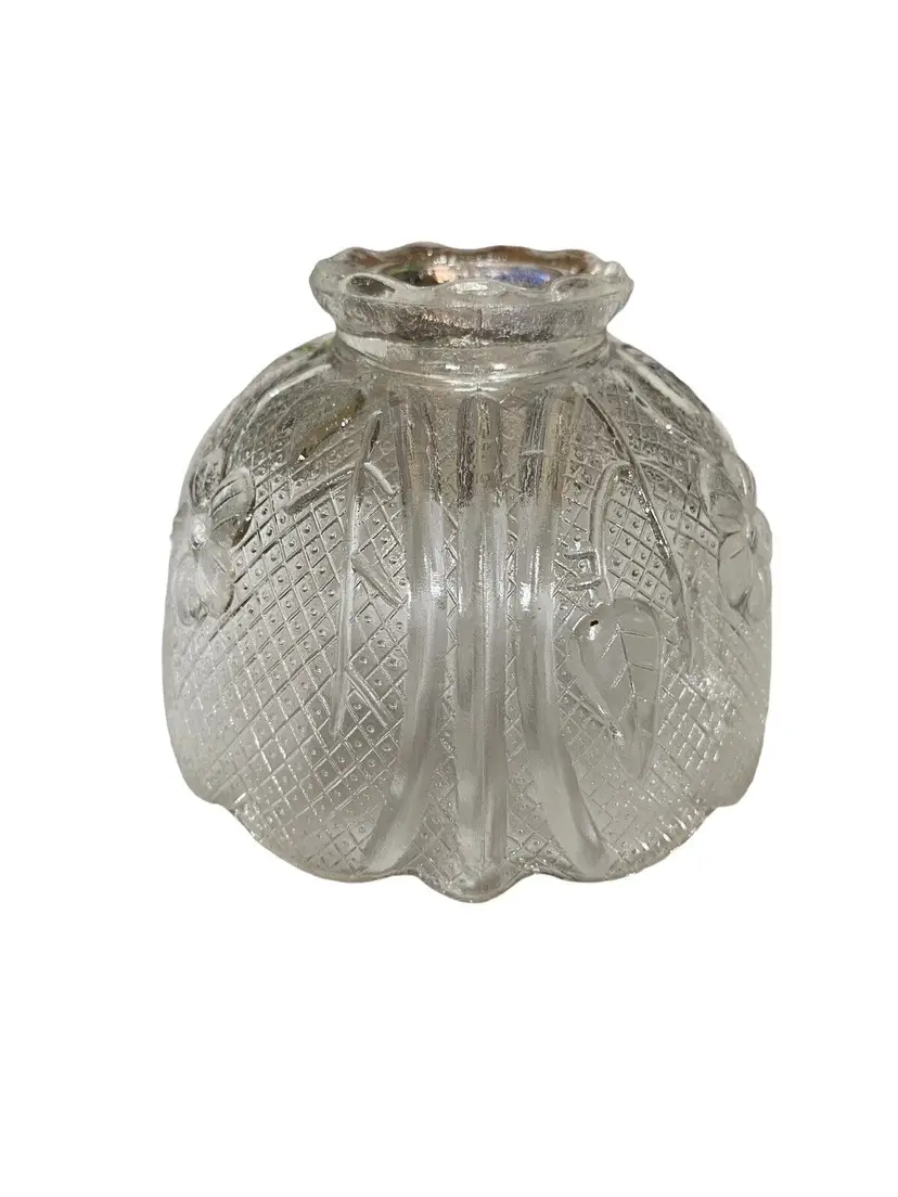 Antique: No Shape: Fairy lamp Occasion: All Occasions Size: Small Item Length: 0.25 in Additional Parts Required: No Suitable For: TEALIGHT CANDLE Department: Adults Care Instructions: Clean with Warm Water Number in Pack: 1 Item Height: 2.75” Style: 1970s Features: Free standing, embossed floral Finish: Embossed Room: Any Room Engraved: No Pattern: Floral Character: Tiara glass Color: Clear Material: Glass Subject: fairy lamp shade Brand: Indiana Glass Type: fairy lamp Era: 1970's Customized: No Model: Fairy Lamp Packaging: Unboxed Theme: Fairy lamp Original/Reproduction: Original Time Period Manufactured: 1970-1979 Country/Region of Manufacture: United States Production Technique: Pressed Glass Character Family: N/A