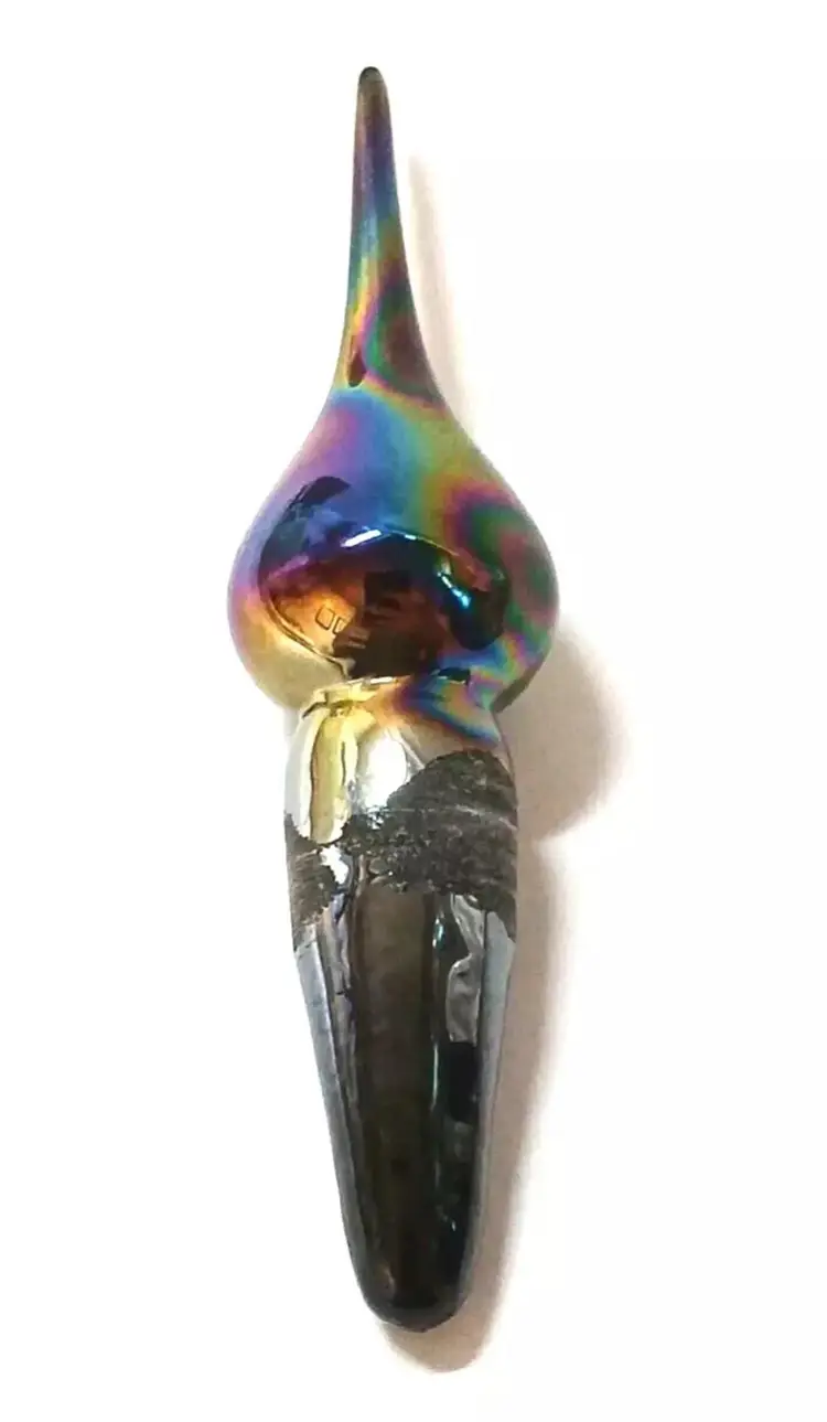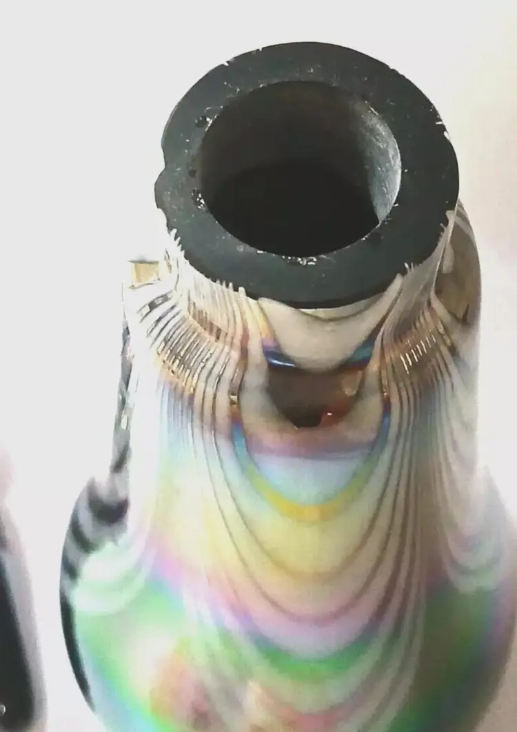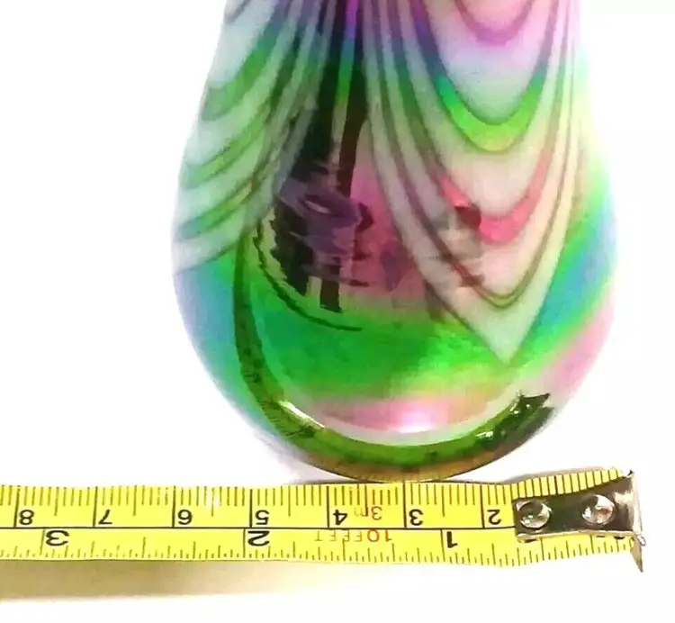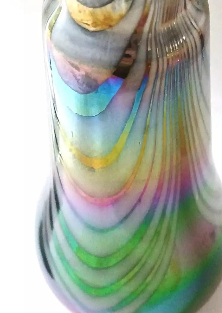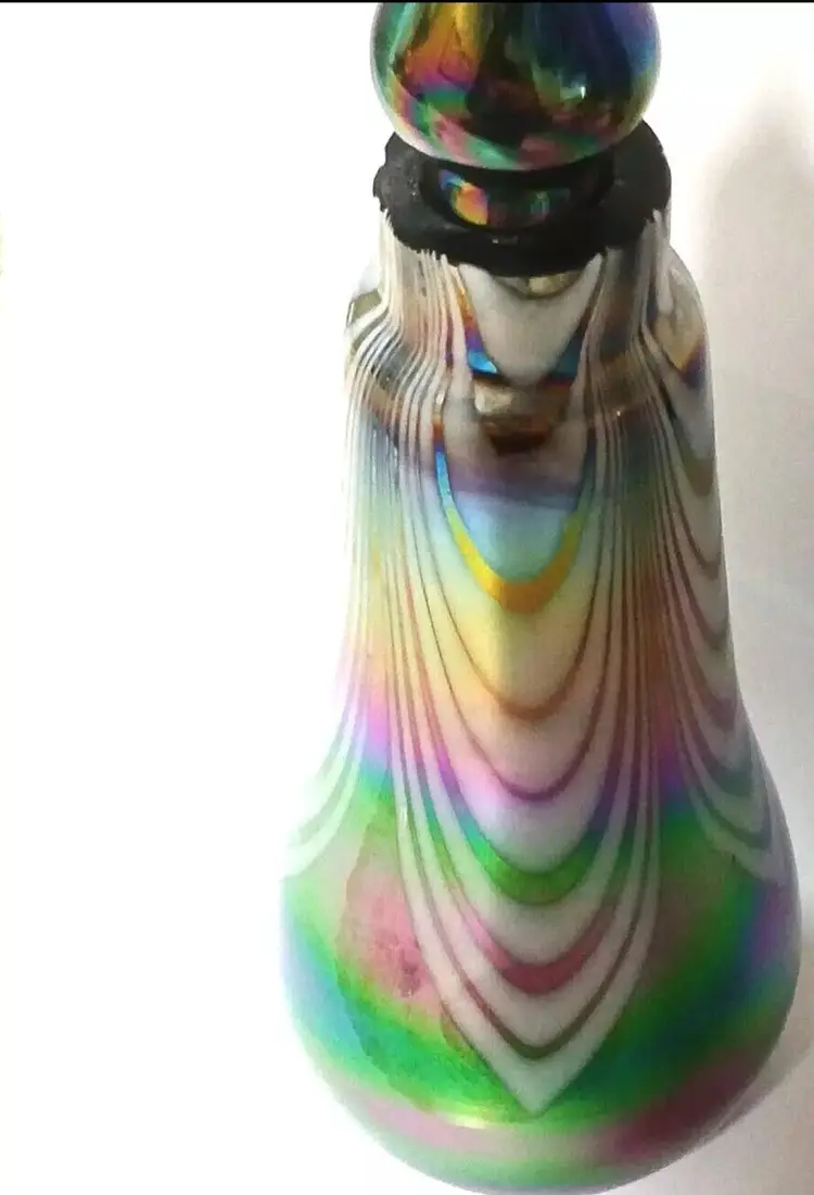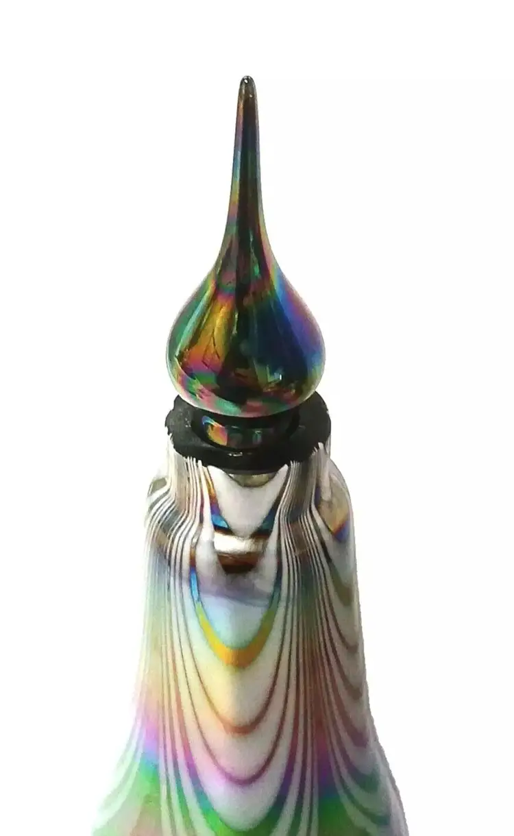 Vintage Iridescent Art Glass Perfume Bottle 6½" Tall Multicolor.
