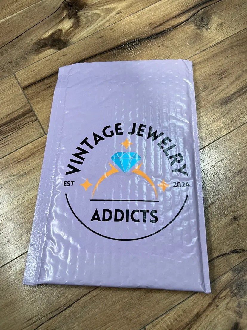 Are you interested in setting your mail apart from the rest?! These double sided padded 9x5 inch polymailers have a very large Vintage Jewelry Addicts logo on either side. Your customer will always know they’ve received their goodies from you!