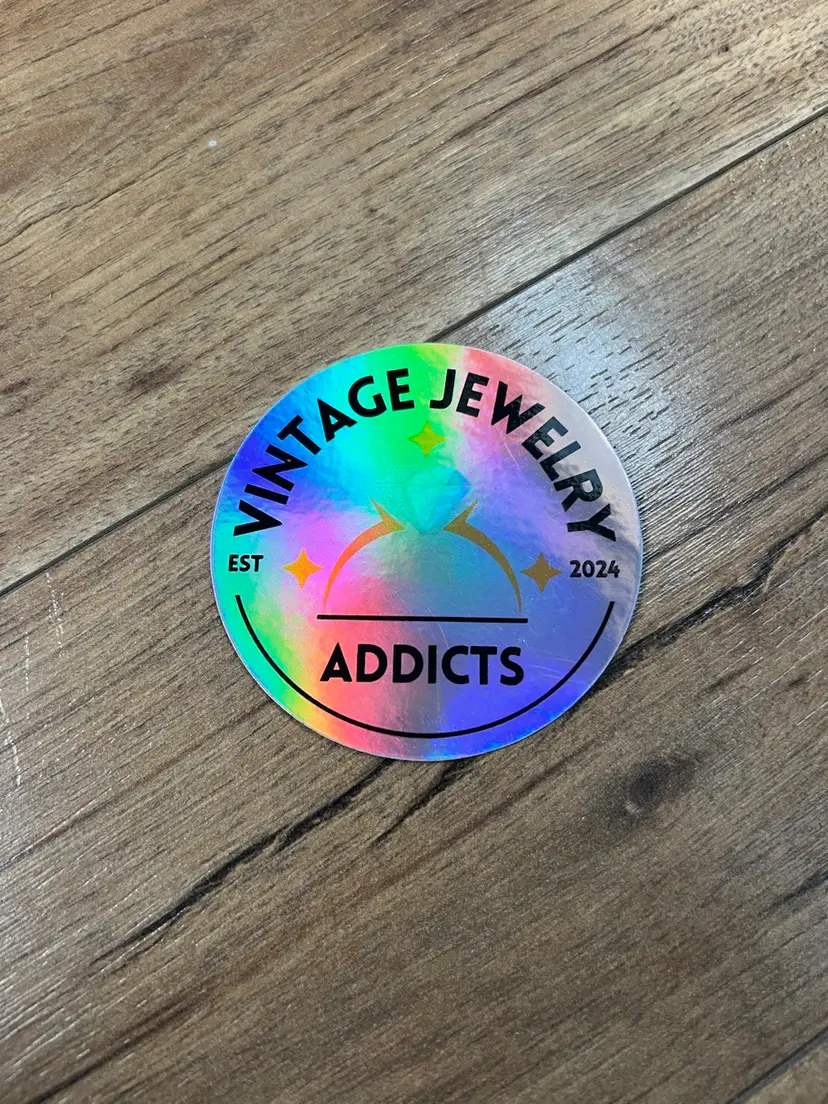 Oohhh so shiny! Kind of like our vintage jewelry addiction 😝😇 These 3 x 3 inches stickers are great to put on notebooks or simply gift to top VIP customers. These are “holographic” stickers so they are very shiny.