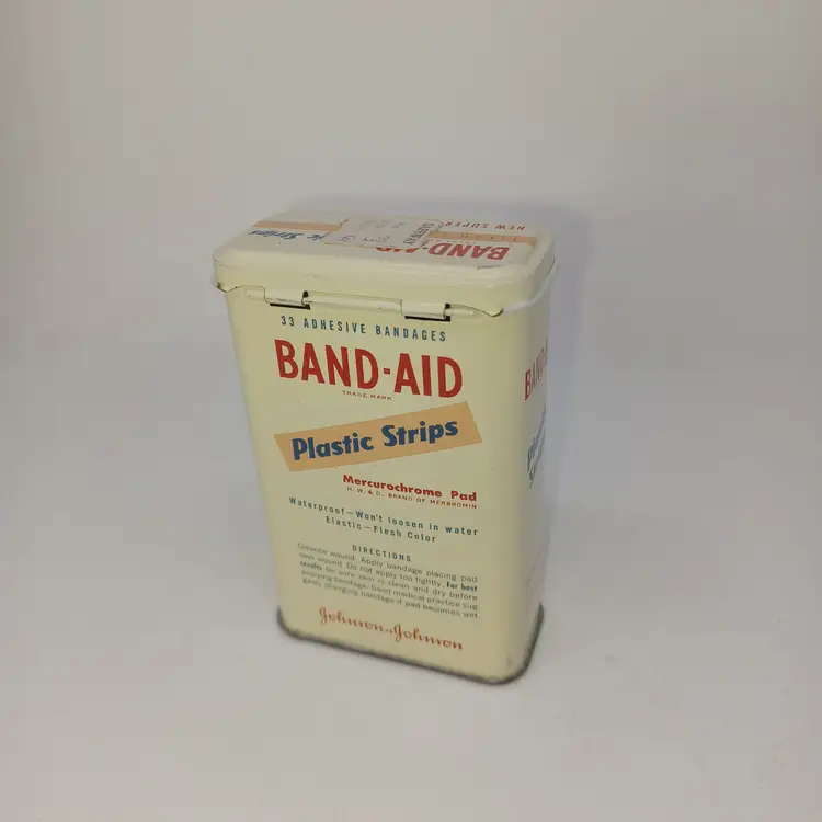 Vintage Johnson & Johnson Band-Aid Metal Box Tin Plastic Strips Mercurochrome Circa 1960's In good vintage condition please see all pictures as they are the best description all items from a smoke-free home with pets experienced shipper