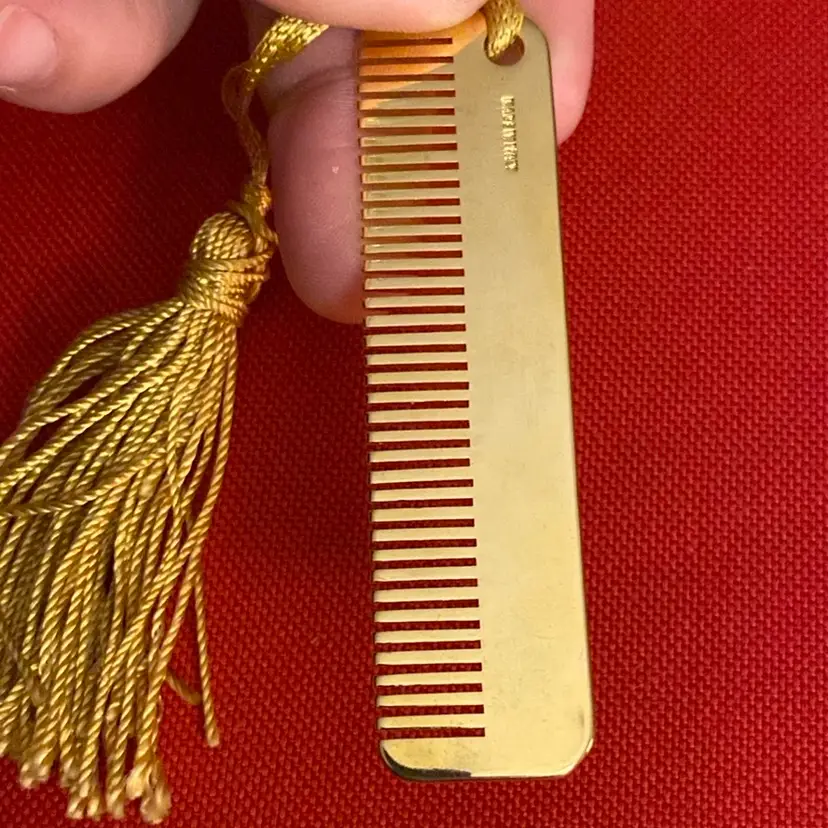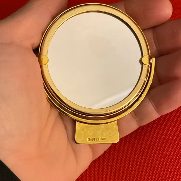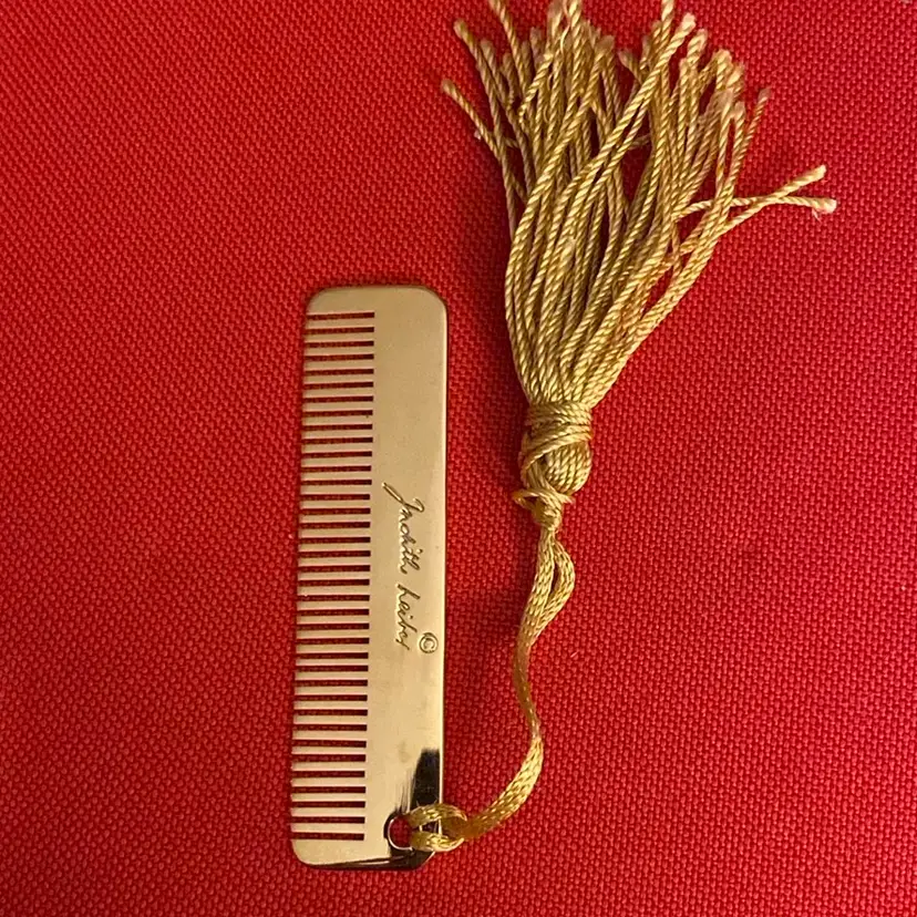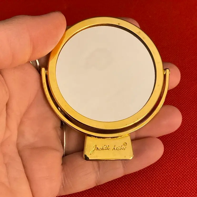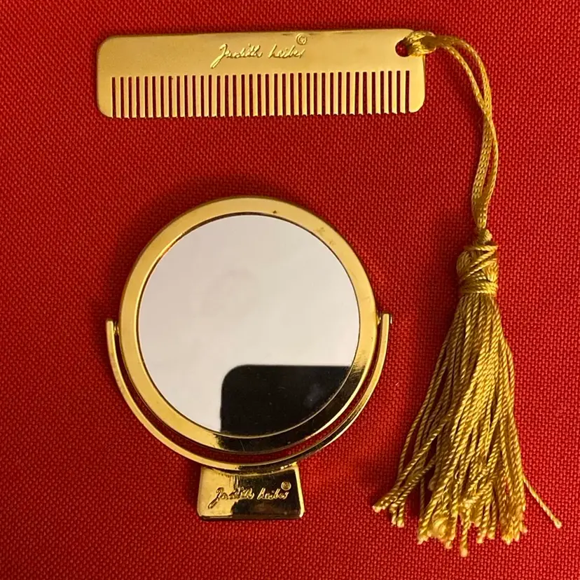 These are both beautiful and sought after, made by the excellent designer Judith Leiber. Mirror 3 in long by 2 1/2 in wide. Comb 3 in long by 1 in tall. They are used and vintage, so the mirror has a little bit of wear, but still looks great!