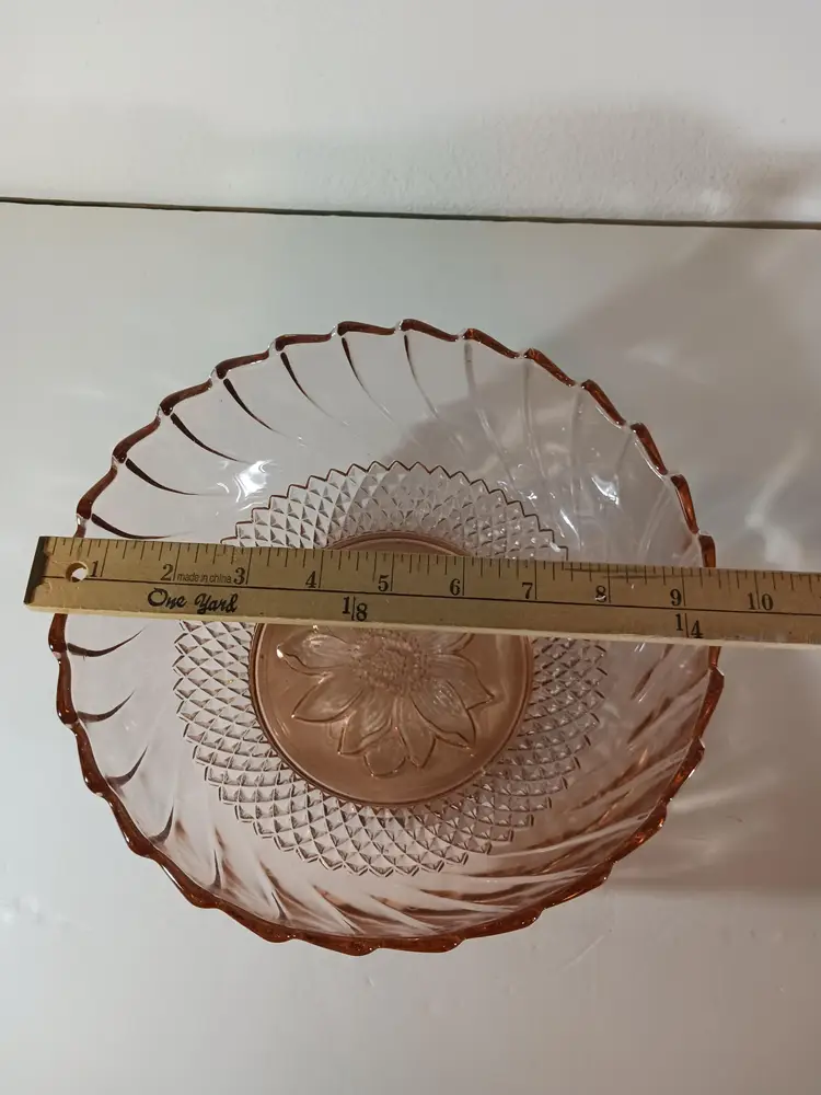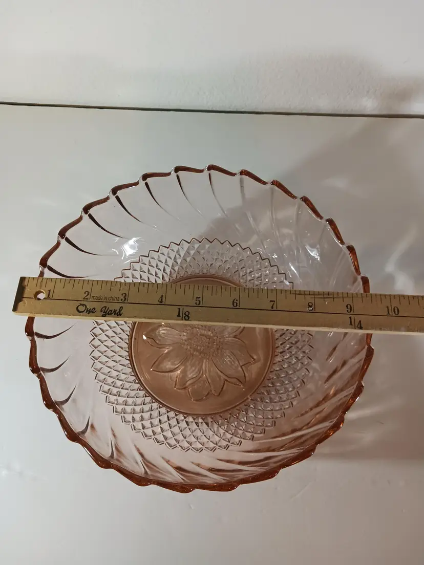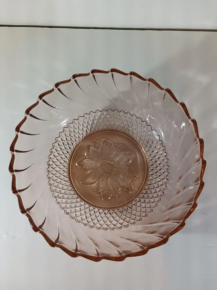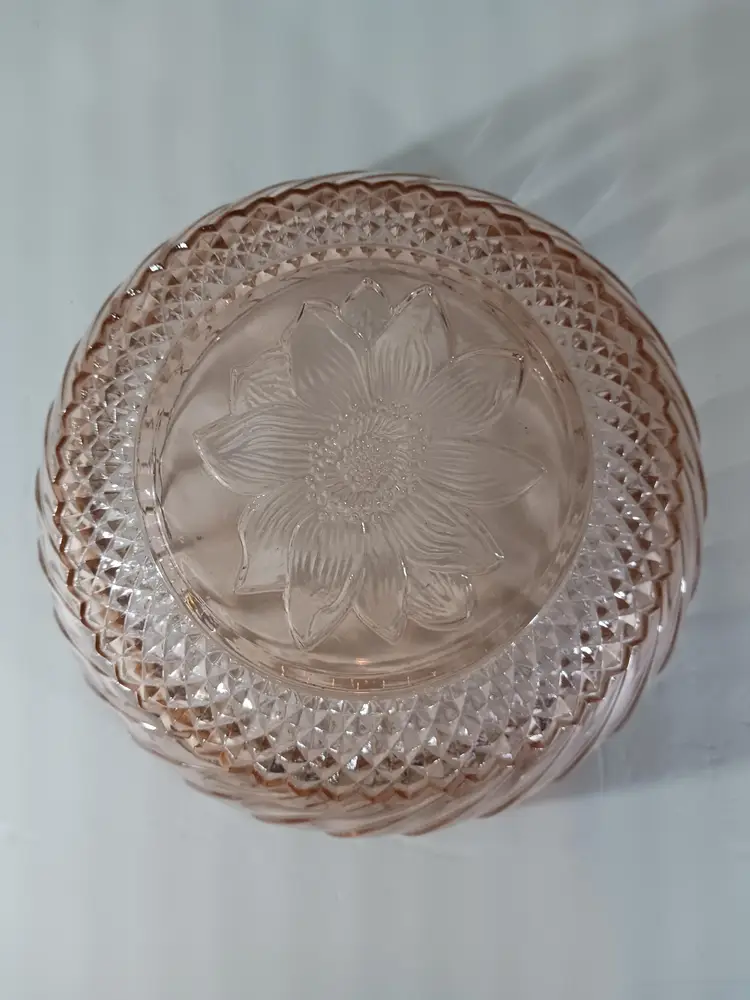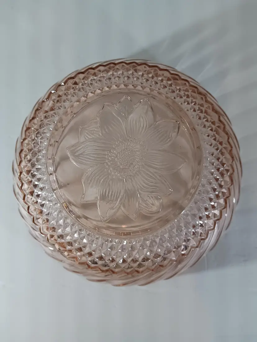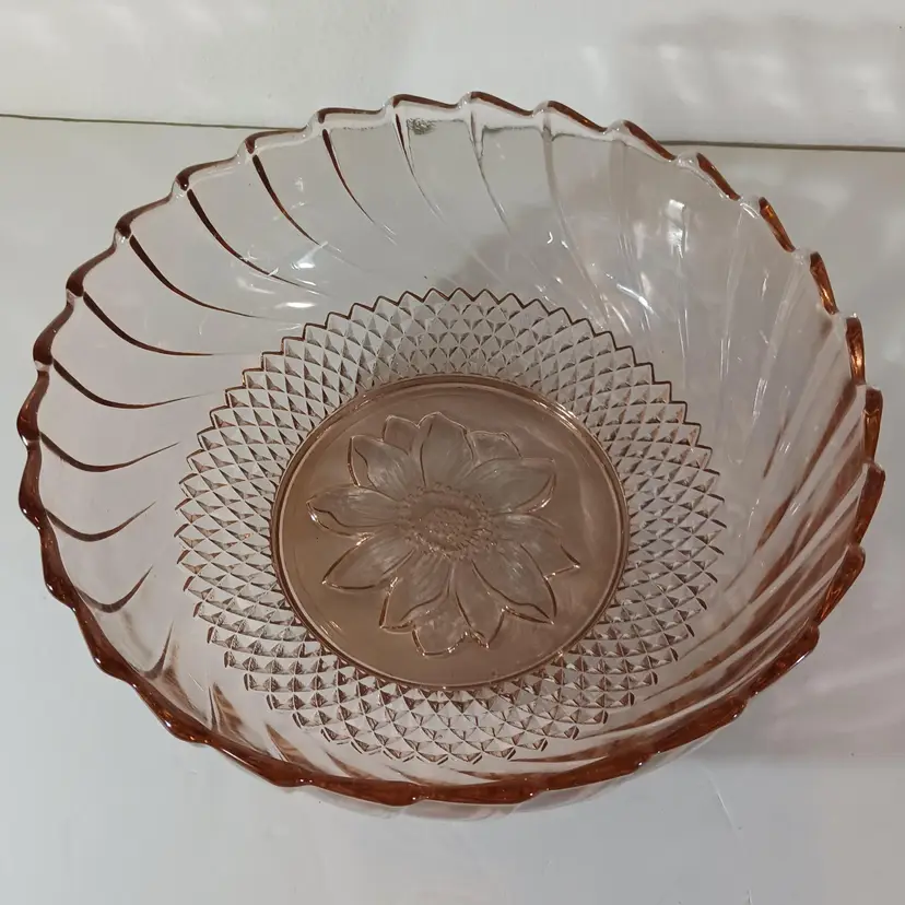 Vintage KIG INDONESIA SUNFLOWER SERVING CONSOLE BOWL Pink Depression Glass 9"
