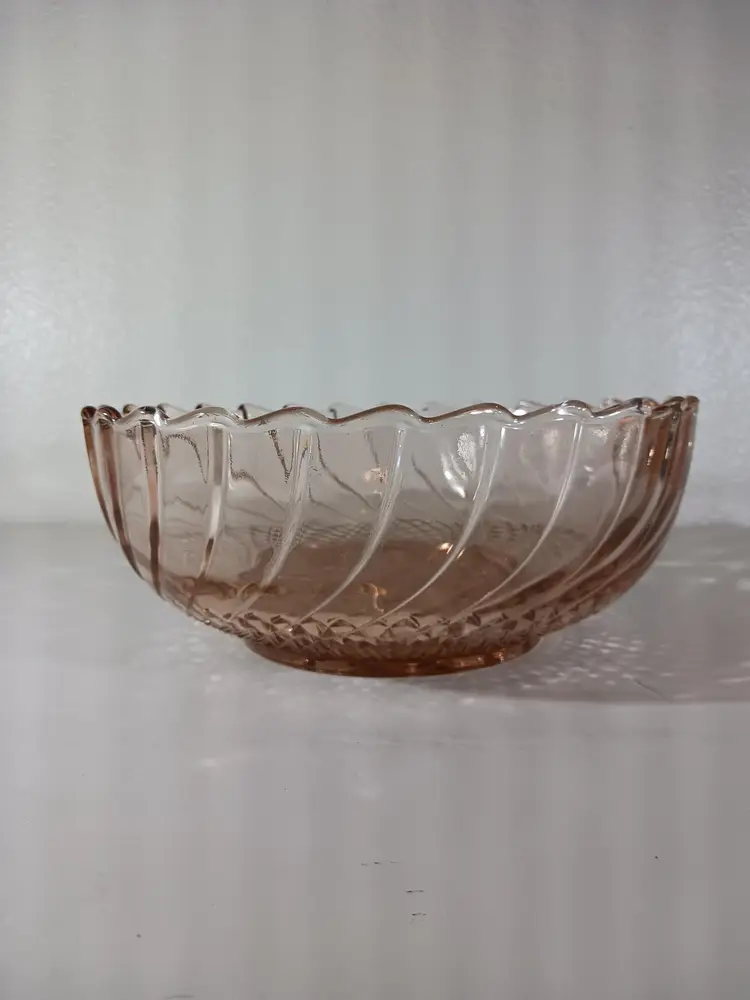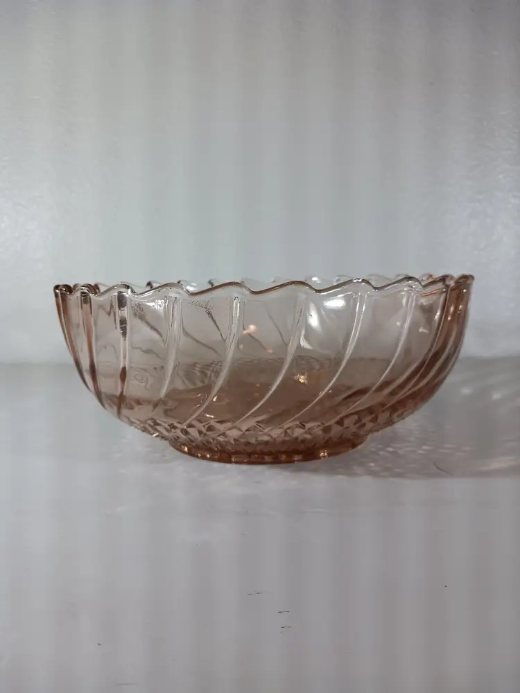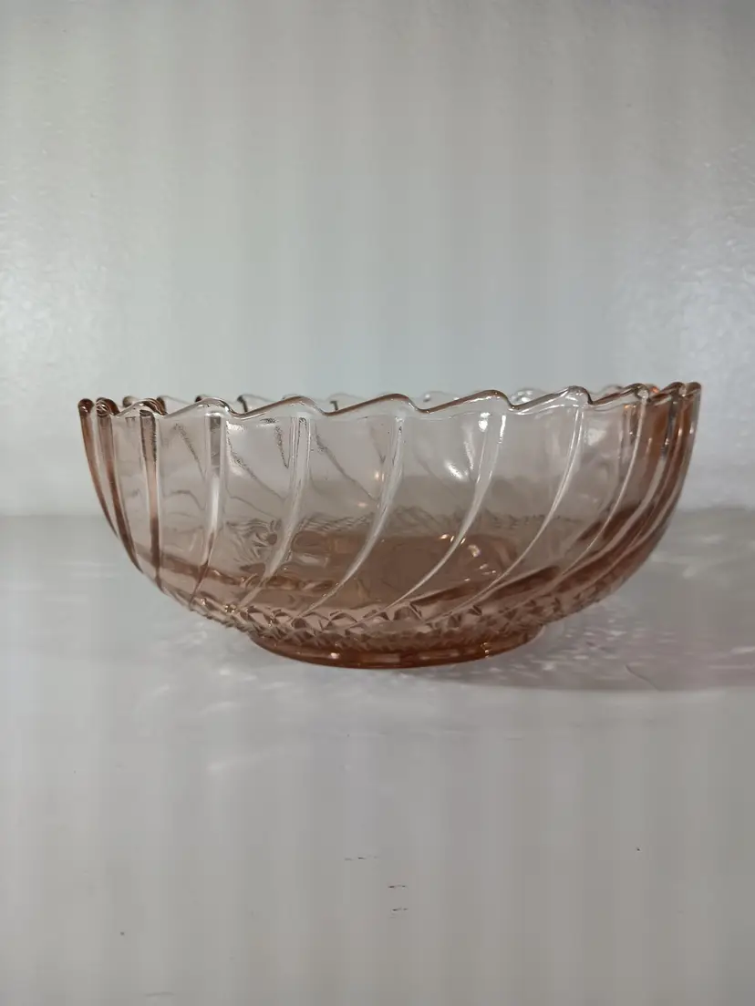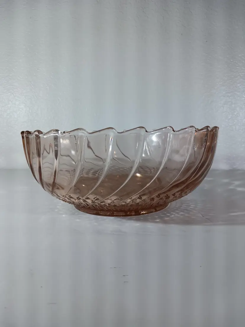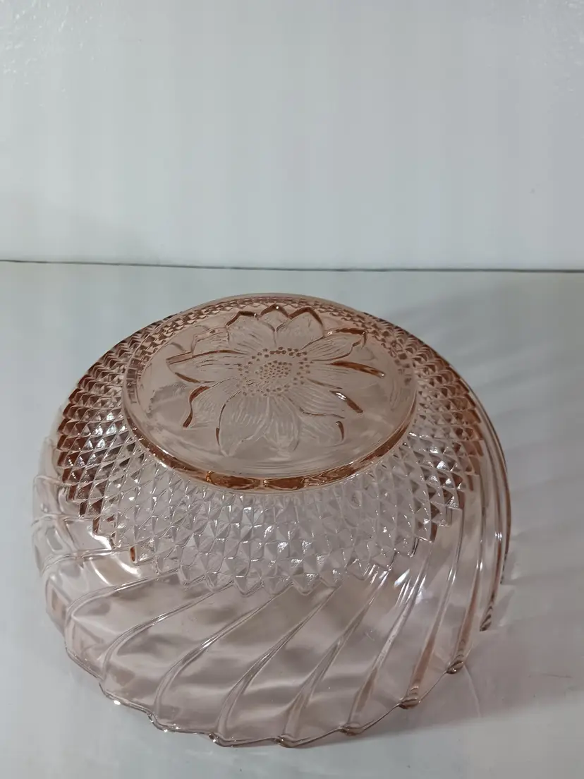 Vintage KIG INDONESIA SUNFLOWER SERVING CONSOLE BOWL Pink Depression Glass 9"