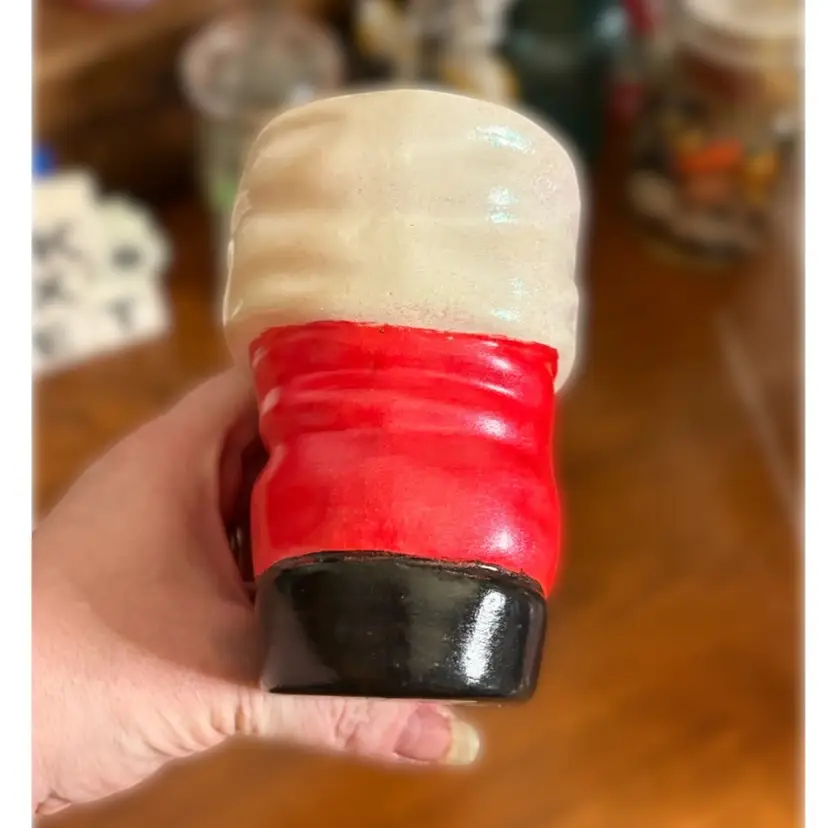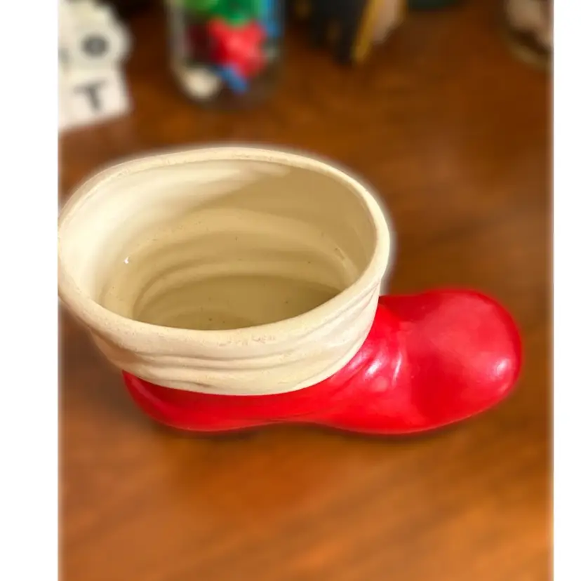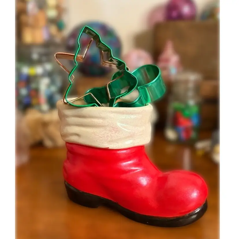 Large ceramic Santa boot (about 6 inches) Great for bottle brush trees, cookie cutters or all sorts of holiday decorations!