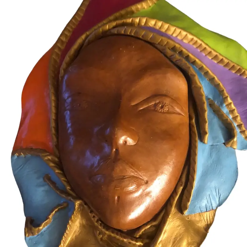 THIS A BEAUTIFUL MULTI COLOR HANGING LEATHER MASK. In great condition.