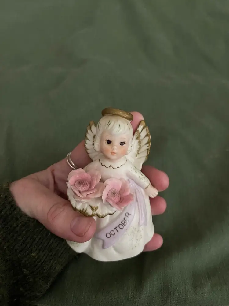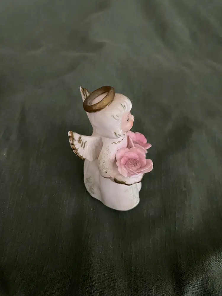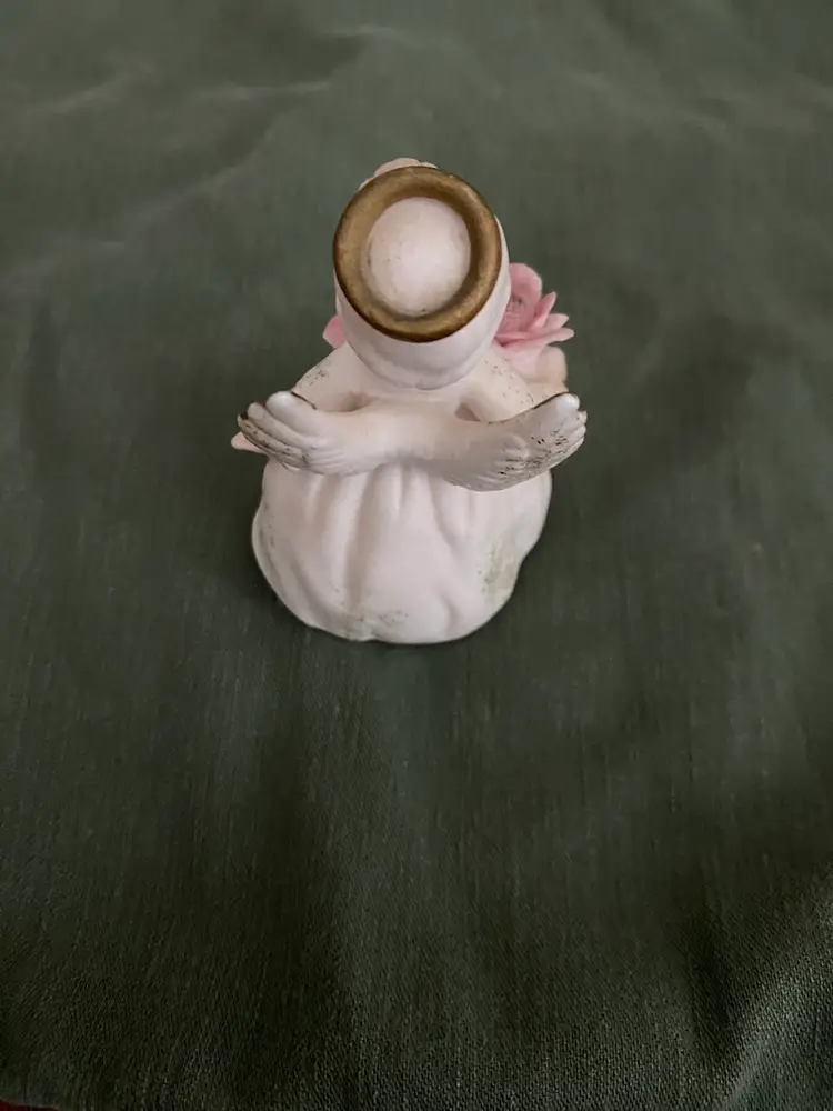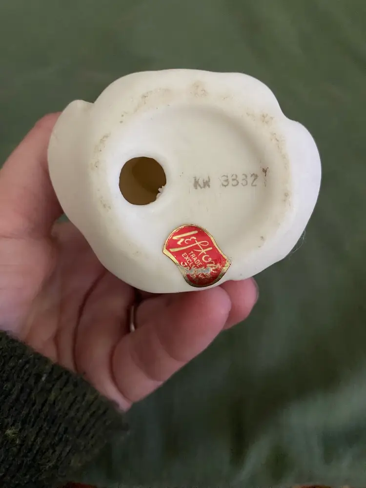 She is so sweet and cute! Her height is 5 in and the width is 3 1/4 in. She is used and has a bit of discoloration on her from her one, but otherwise looks super.
