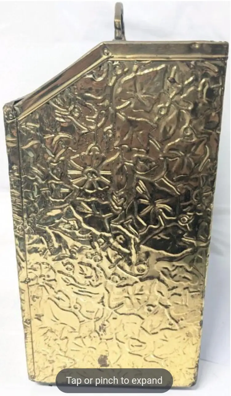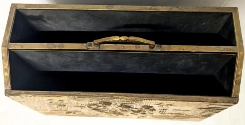 Vintage Lombard-Style Brass Embossed Magazine Rack, 11" Tall