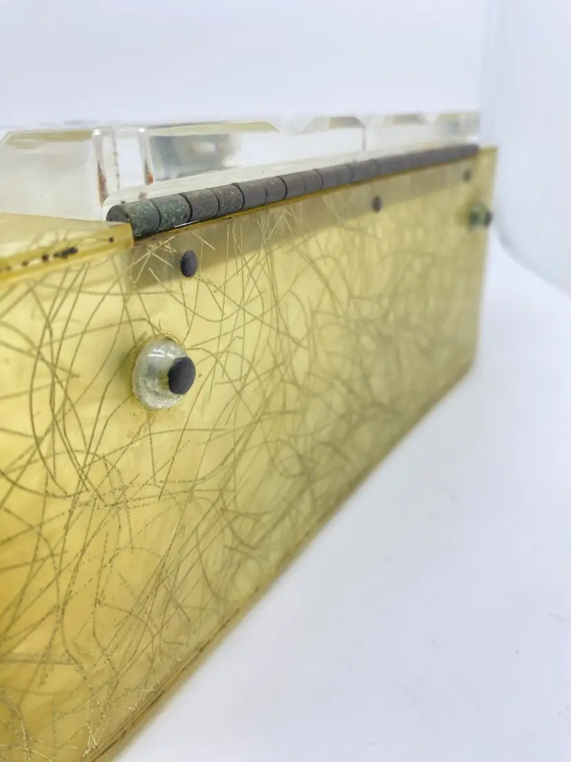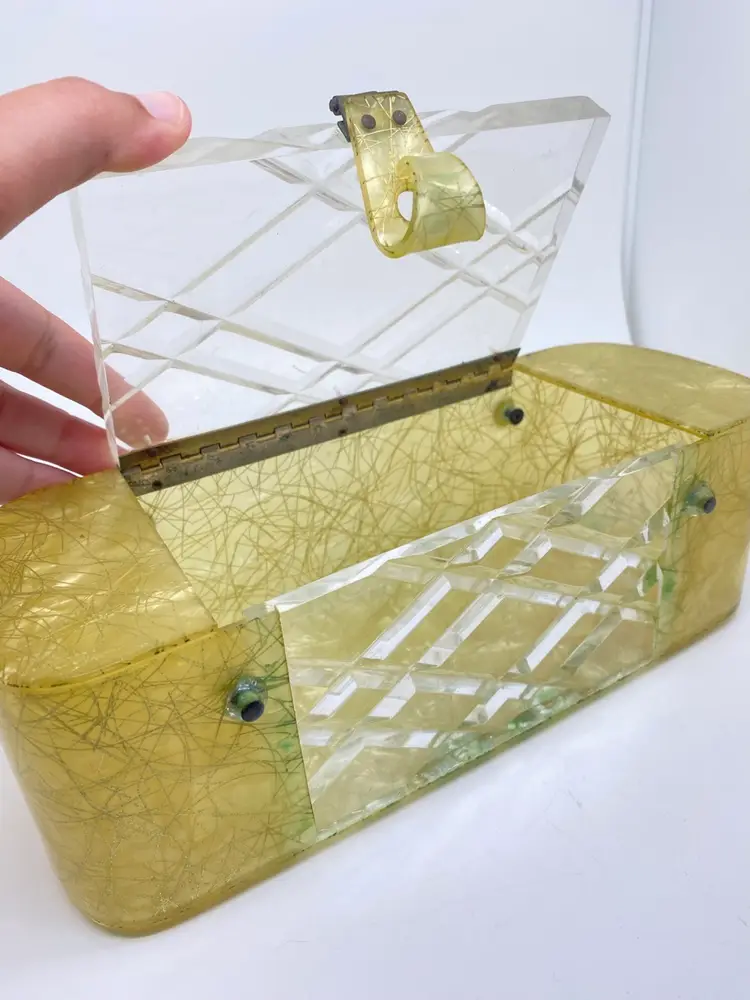 1940s- last picture shows the handles it’s supposed to have. Could be reused as a jewelry box. Some of the hardware on front is loose but still intact.