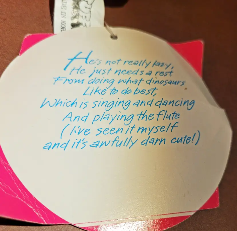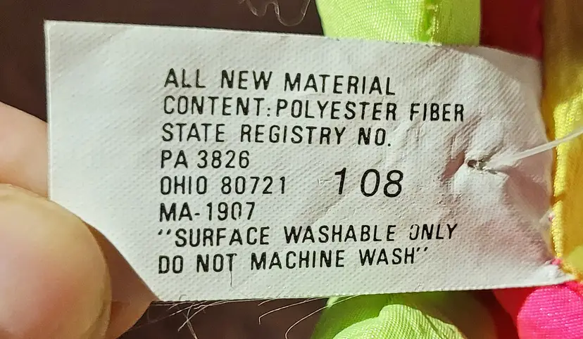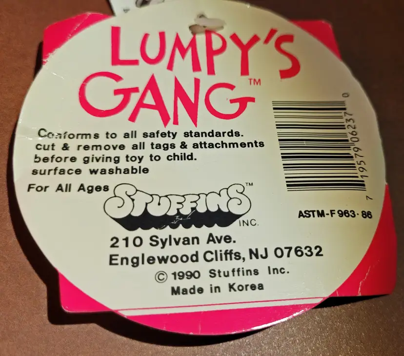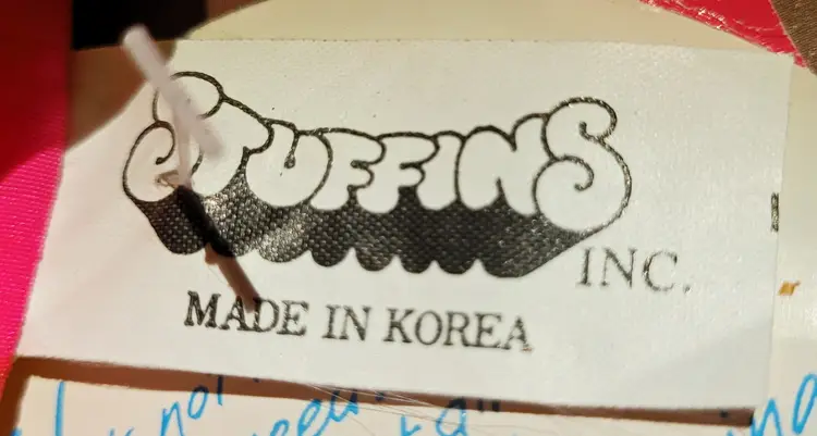 Stuffins Inc. Made in Korea. As Is: Paper tag is worn, wrinkled and has a small tear from years of love. From a smoke free home, please refer to the pictures for its condition and size. Approx. 20.5x13x8.5