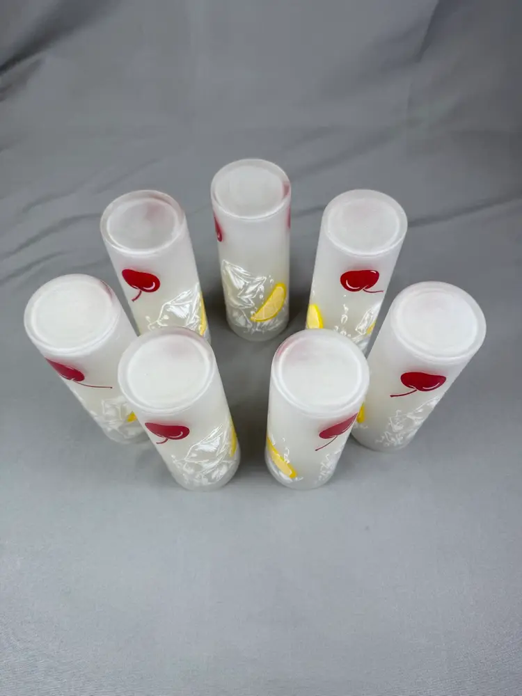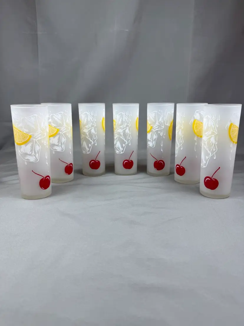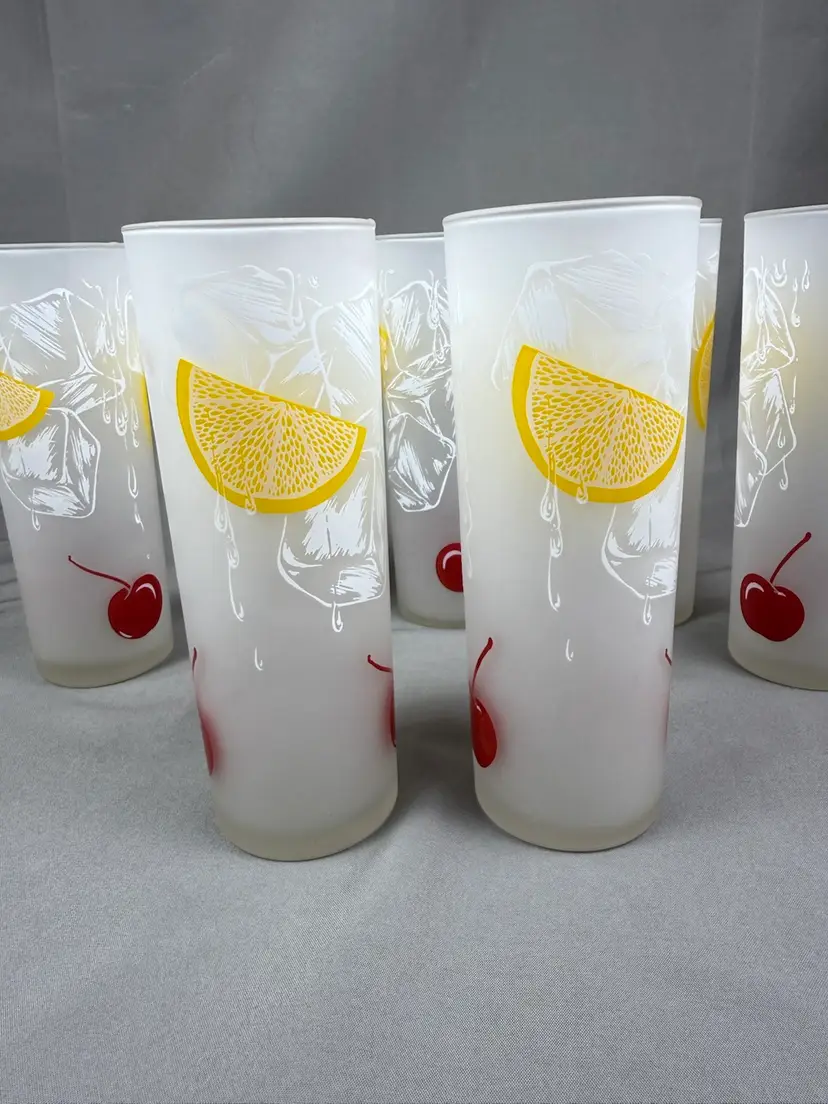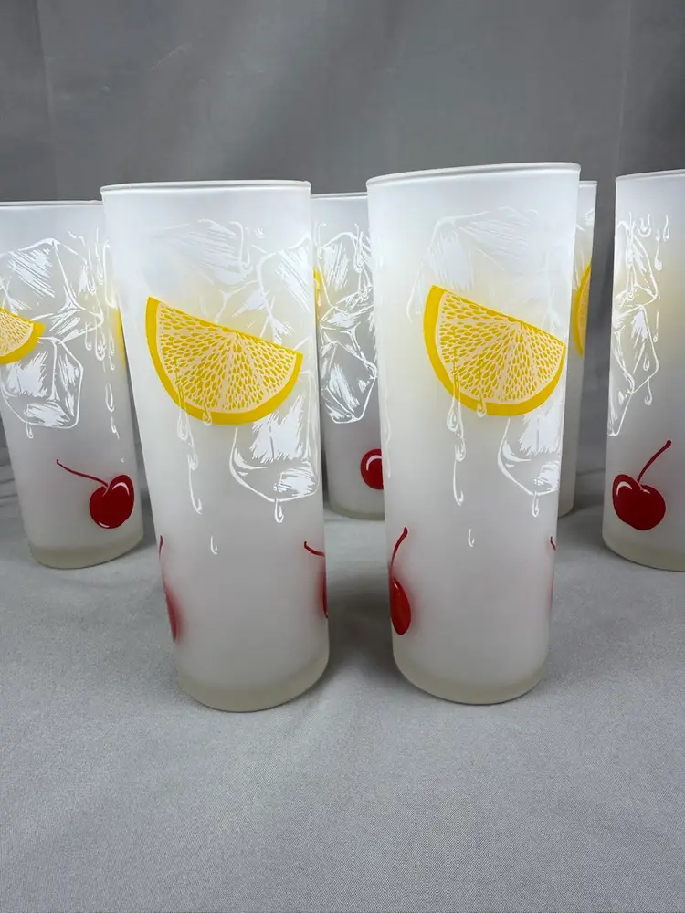 Frosted Ice cubes with cherry and lemon slice design. No chips.