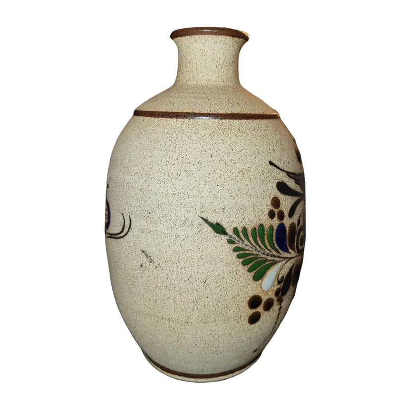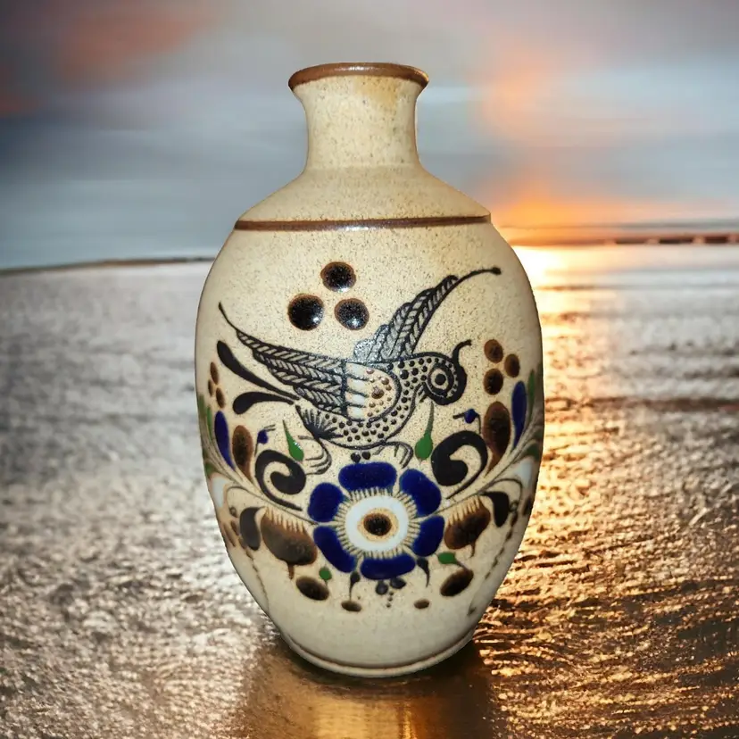 Beautiful Tonala 7 inch vase with a bird. Signed Netzi.