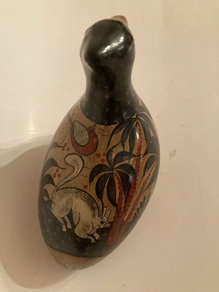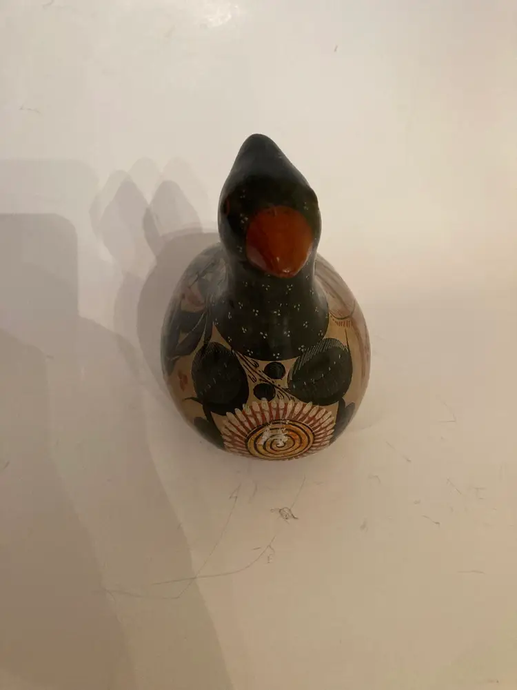 VINTAGE MEXICO TONALA POTTERY BIRD ORNATE HAND PAINTED FOLK ART