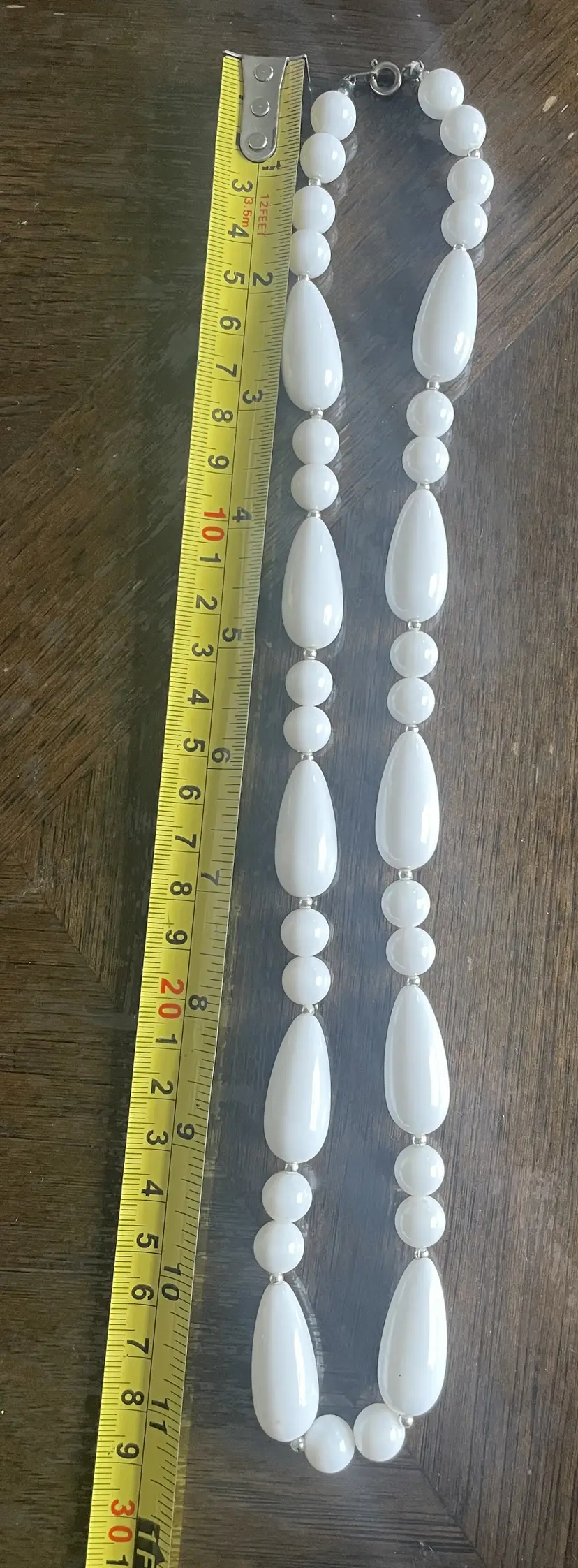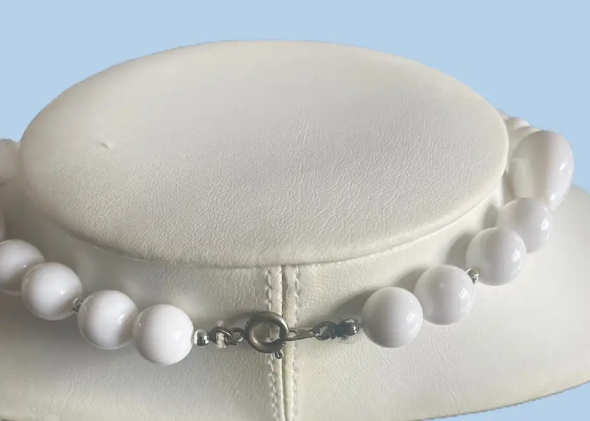 Add a touch of vintage charm to your jewelry collection with this beautiful milk glass necklace.