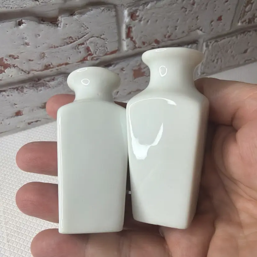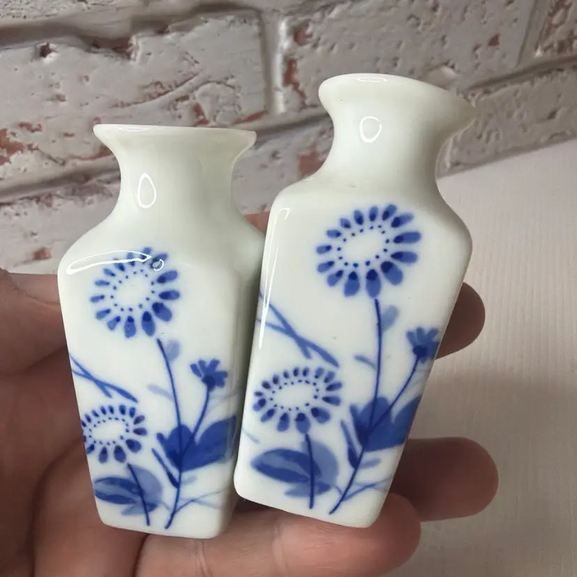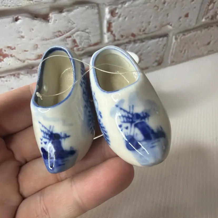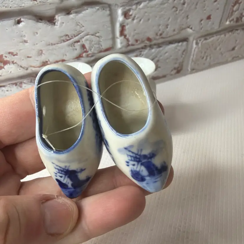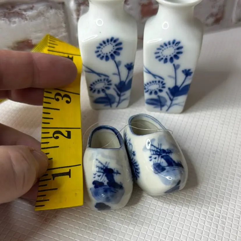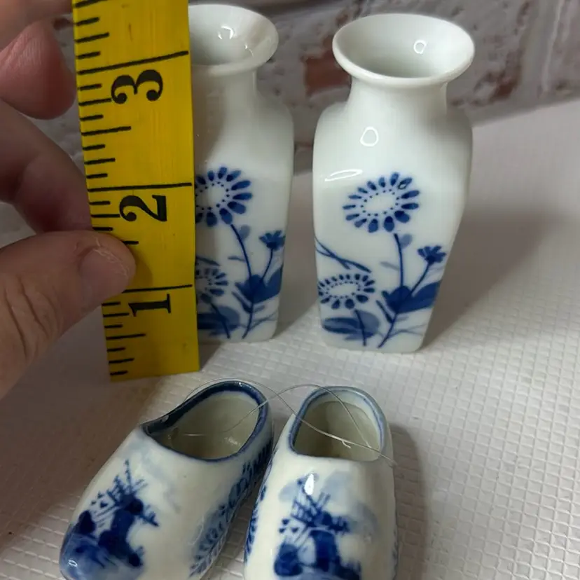 One vase has little bumps on it measures 3 on vases and shoes 2” long