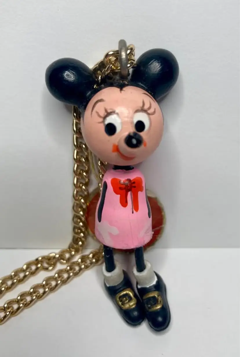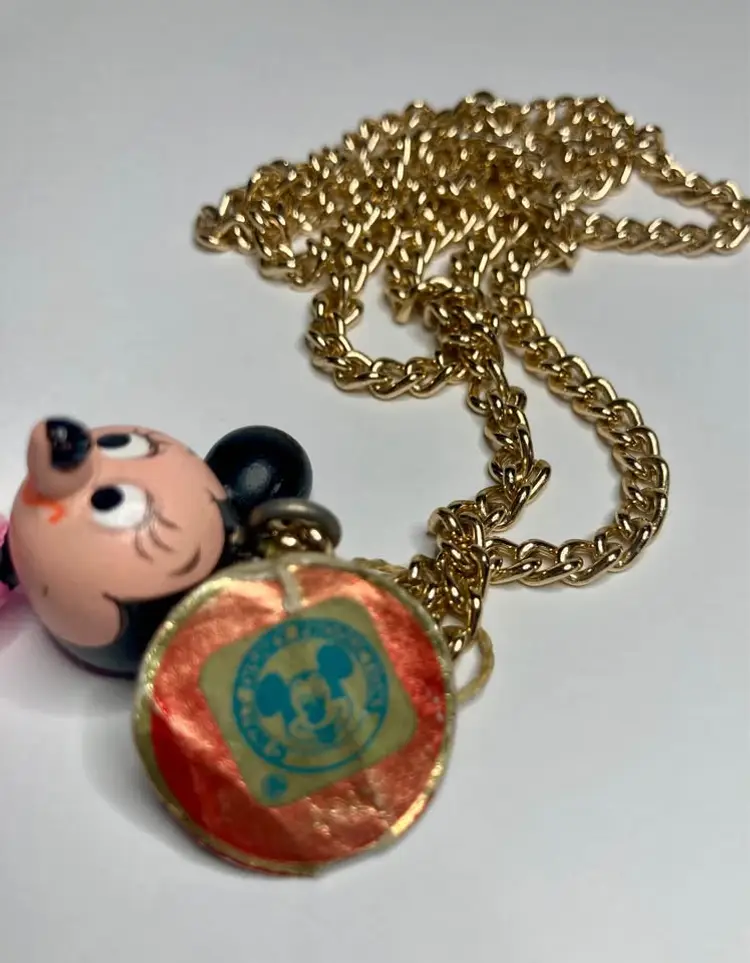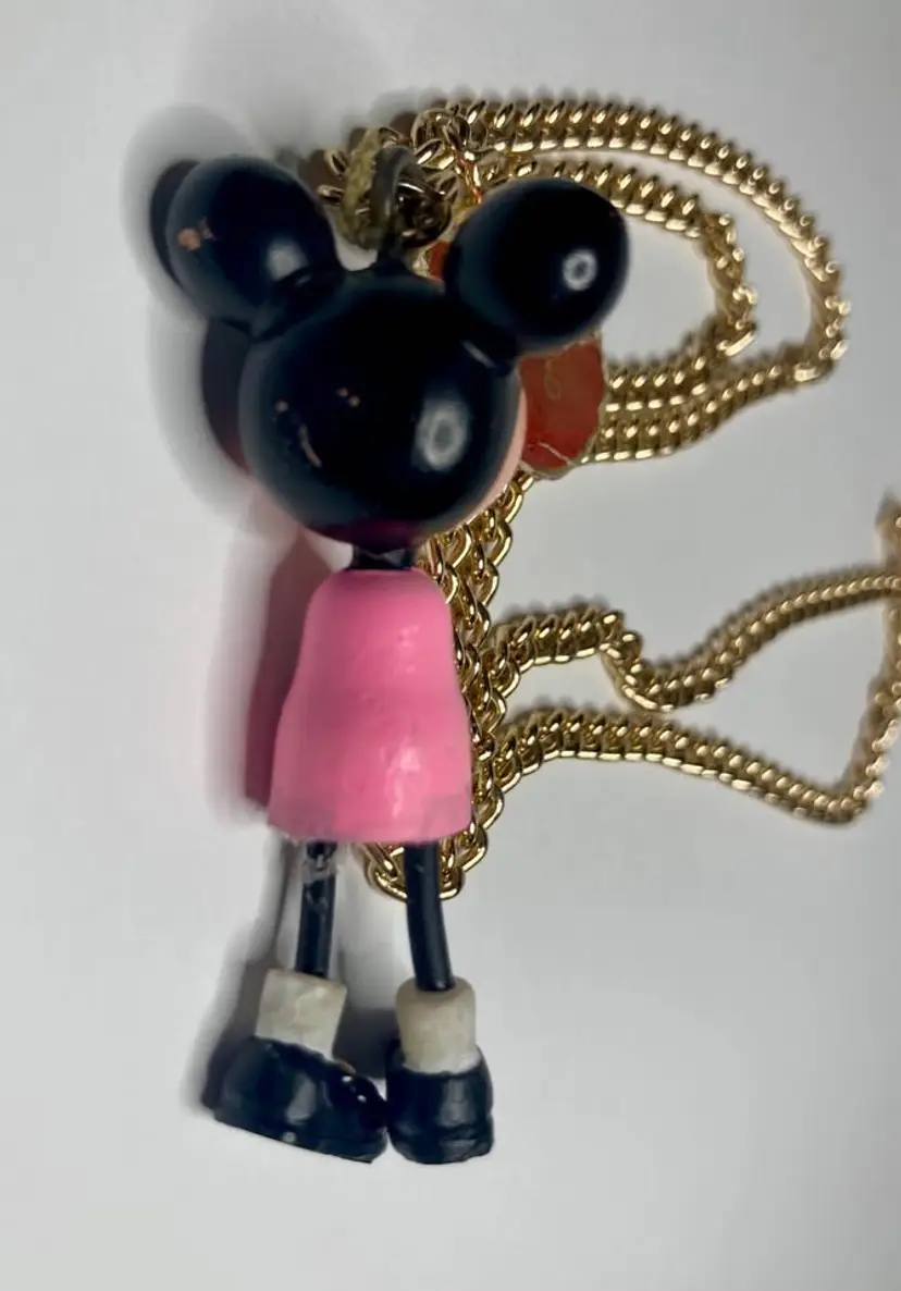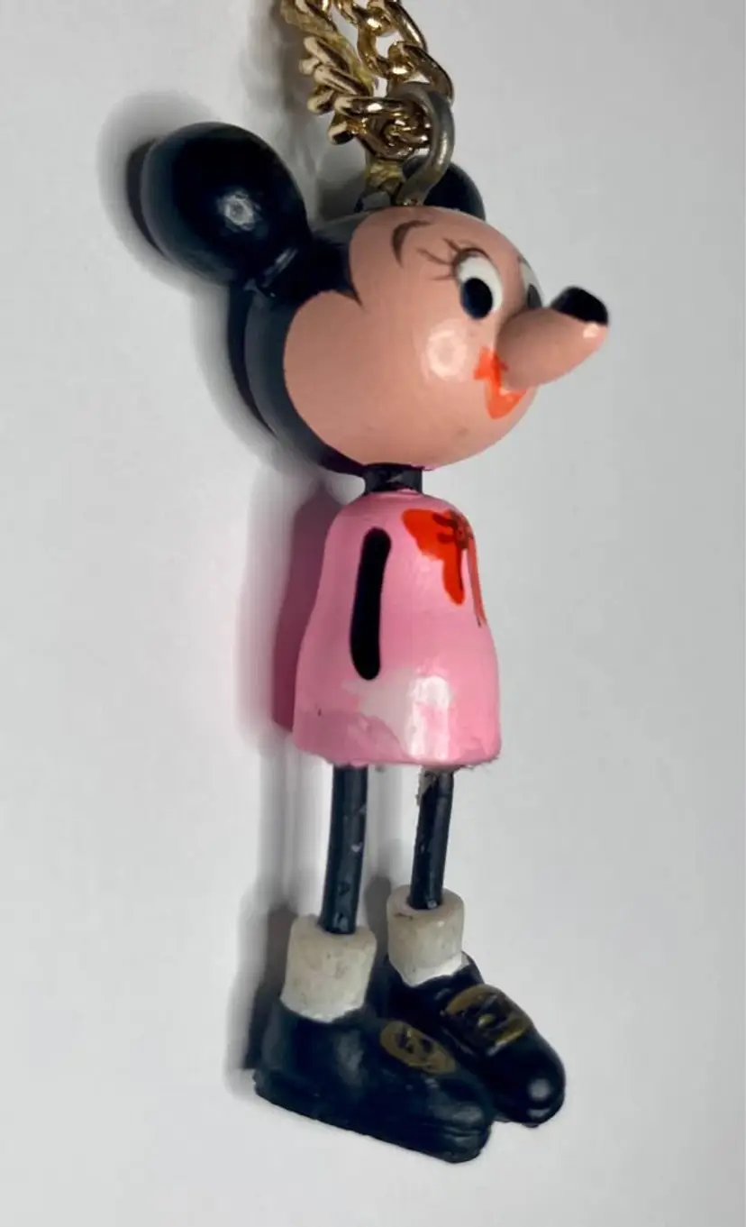 Very hard to find, vintage pendant. Very cute Kokeshi Doll version of Minnie Mouse from Walt Disney Productions. Good condition for its age. Pendant is 1x2.25” and chain is 22”. This item ships from Toronto, CA within 3 business days and shipping time is 5-10 business days. This will ship with any other item for additional $2.00