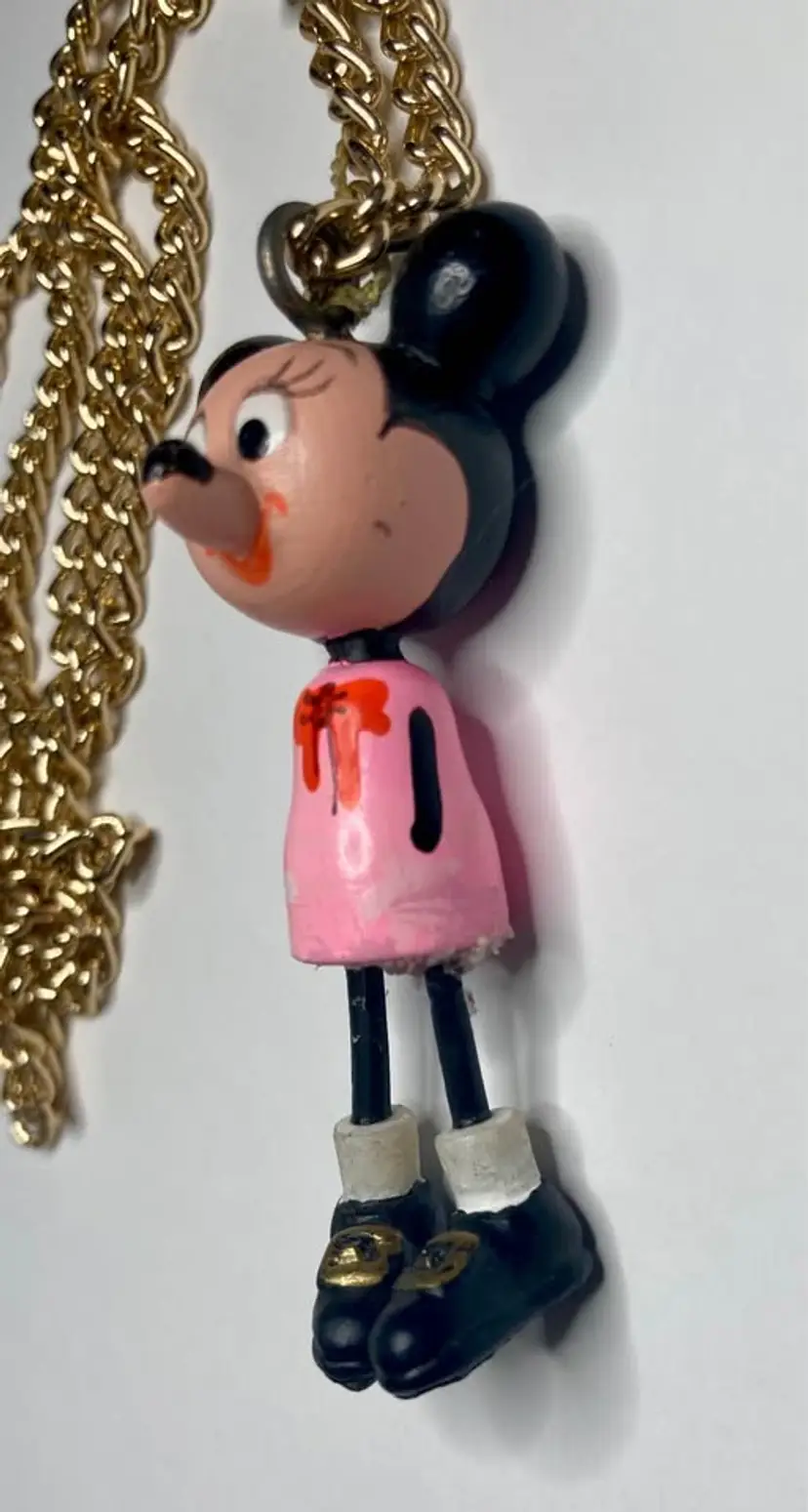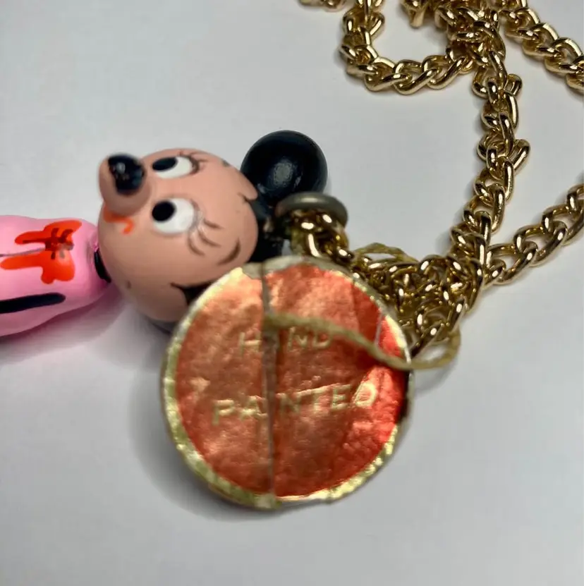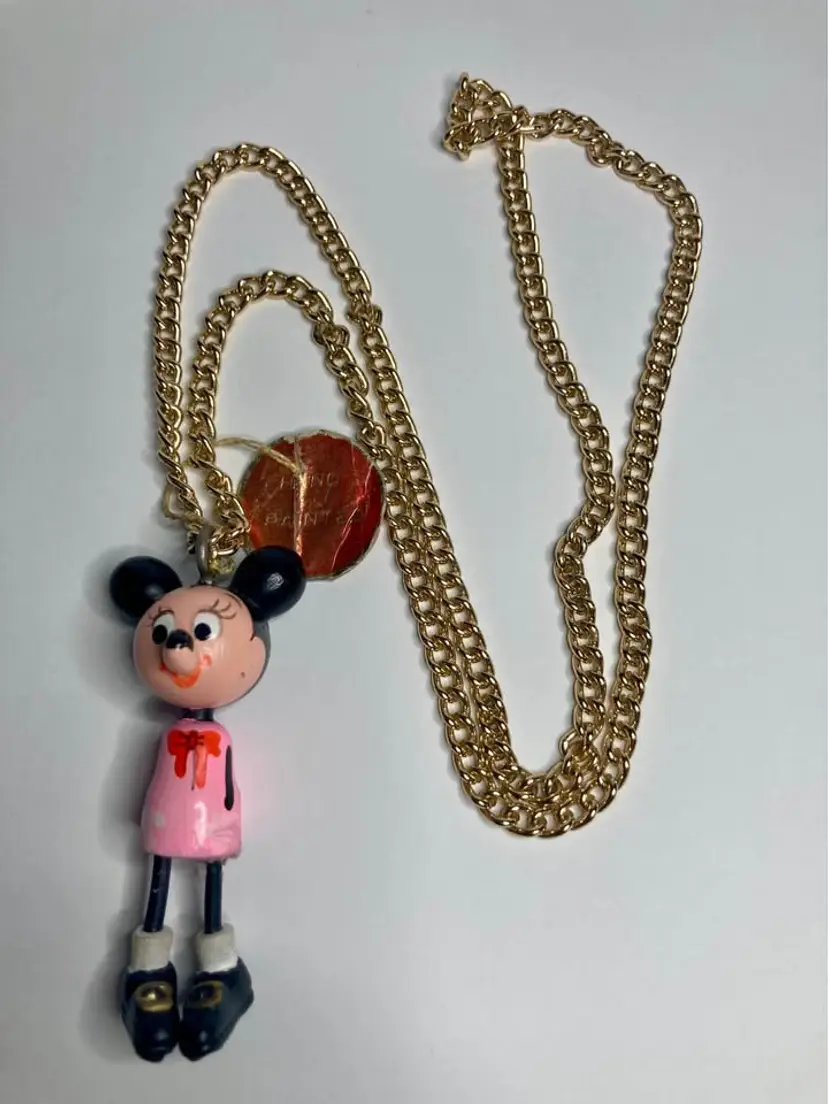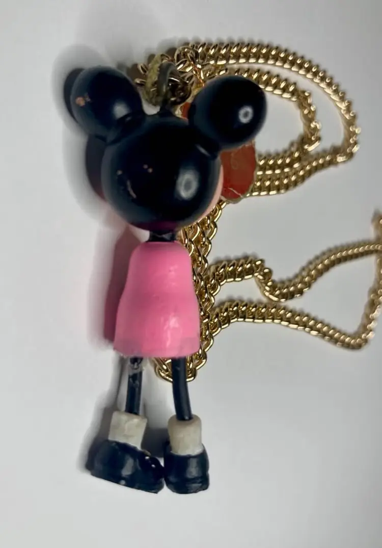 Very hard to find, vintage pendant. Very cute Kokeshi Doll version of Minnie Mouse from Walt Disney Productions. Good condition for its age. Pendant is 1x2.25” and chain is 22”. This item ships from Toronto, CA within 3 business days and shipping time is 5-10 business days. This will ship with any other item for additional $2.00
