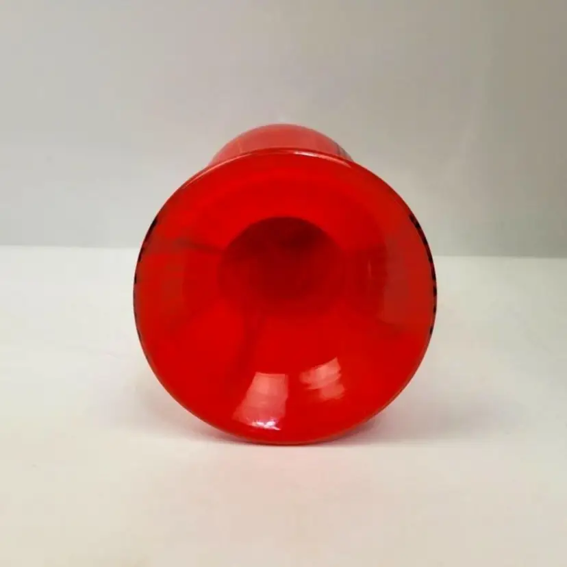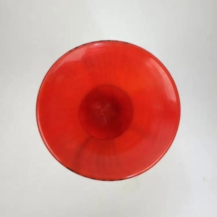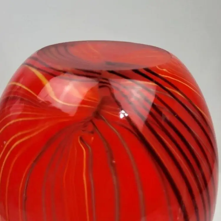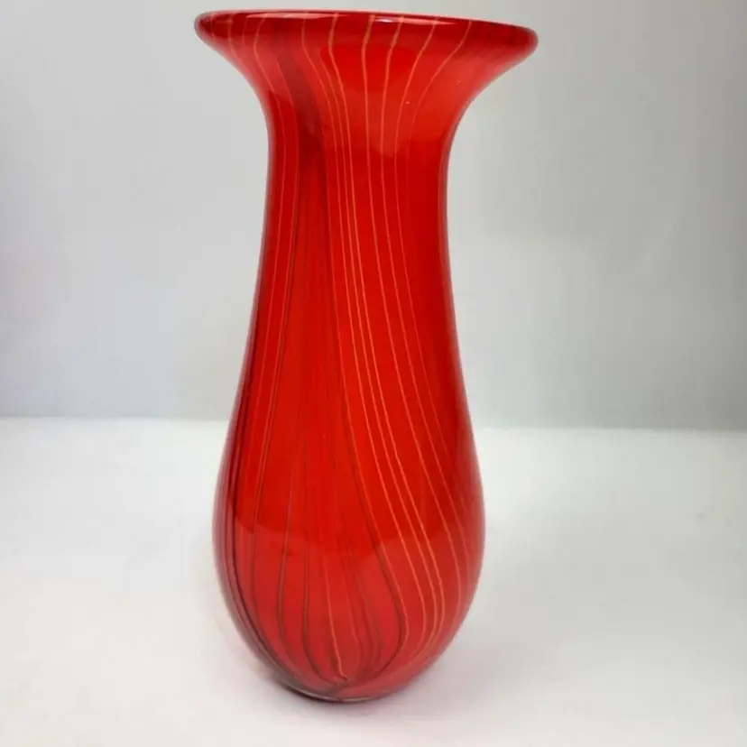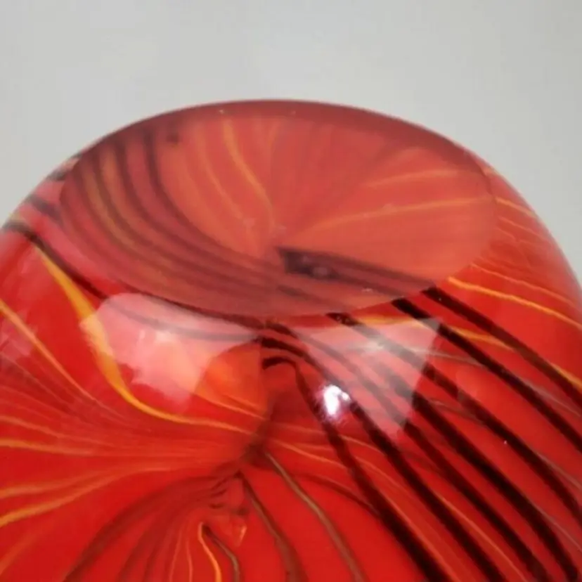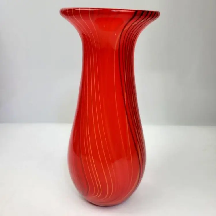 Vintage Art Glass Vase Red w/ Orange & Black Stripe Swirl Design 10"