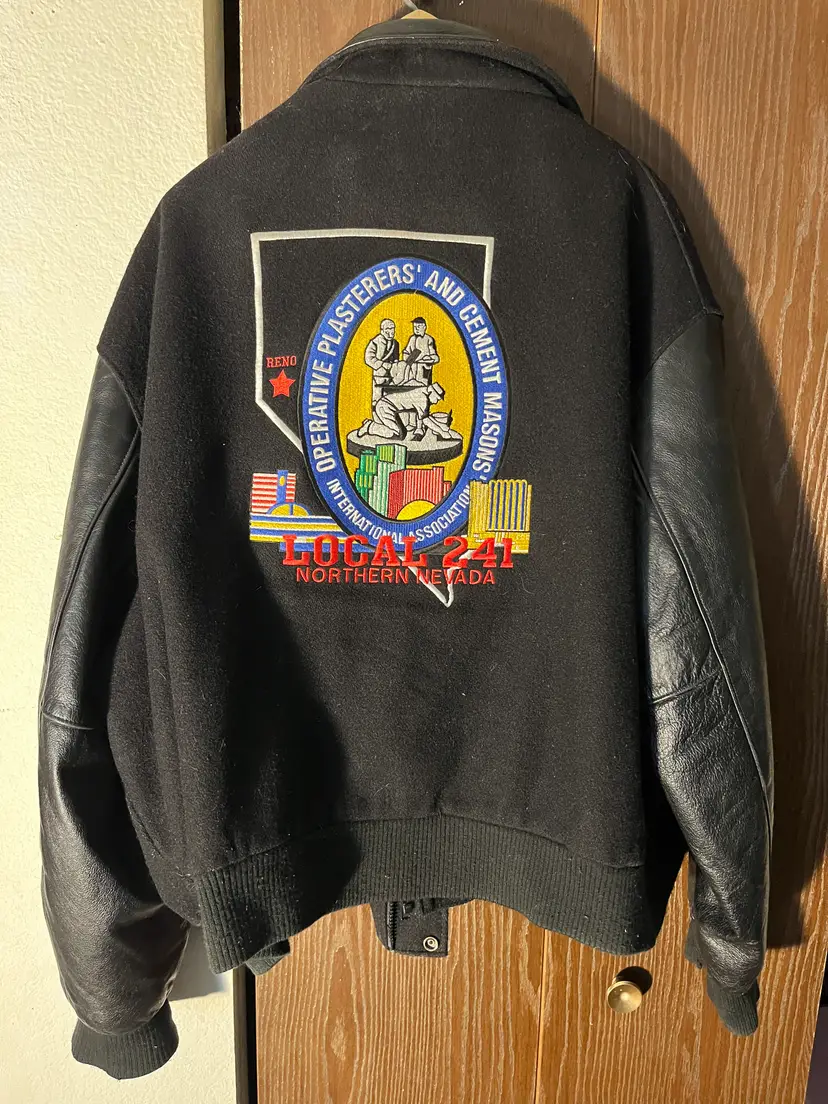 Vintage NEMESIS Local 241 Union Jacket 2XL Wool Leather Reno NV Made in USA Price: $104.99 Authentic vintage NEMESIS Sportswear union jacket proudly representing the Operative Plasterers’ and Cement Masons Local 241 of Northern Nevada. A striking collectible piece of American labor history, this heavyweight jacket features bold embroidery, durable wool body, and genuine leather sleeves. Made in the USA, built to last, and rich in union heritage.