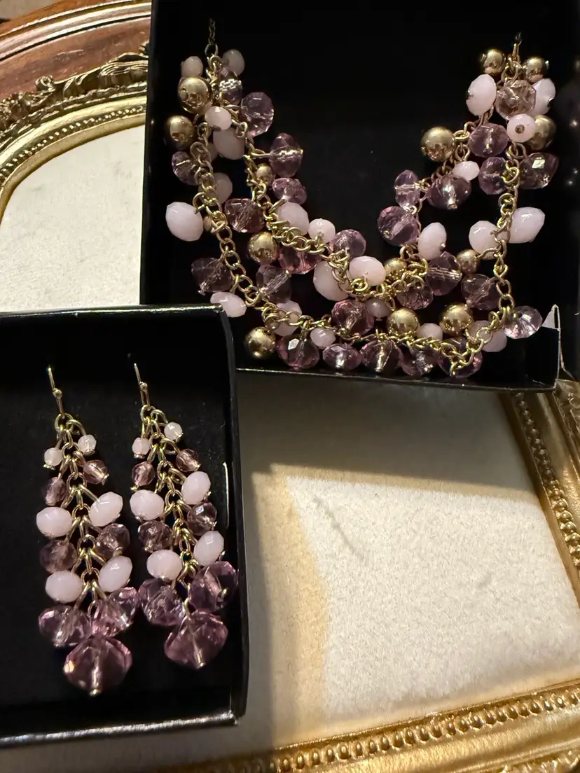 Vintage NOS AVON Orchid Bliss Cluster Necklace And Earrings Necklace 18”-20”