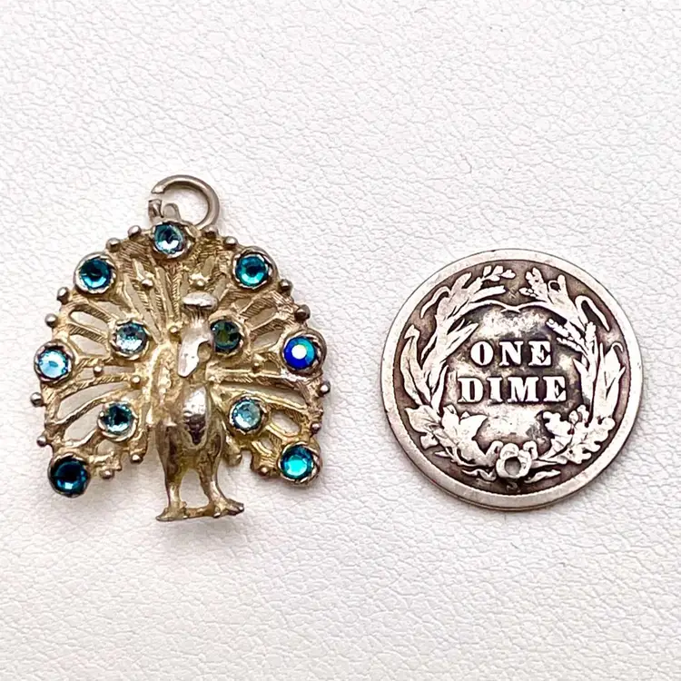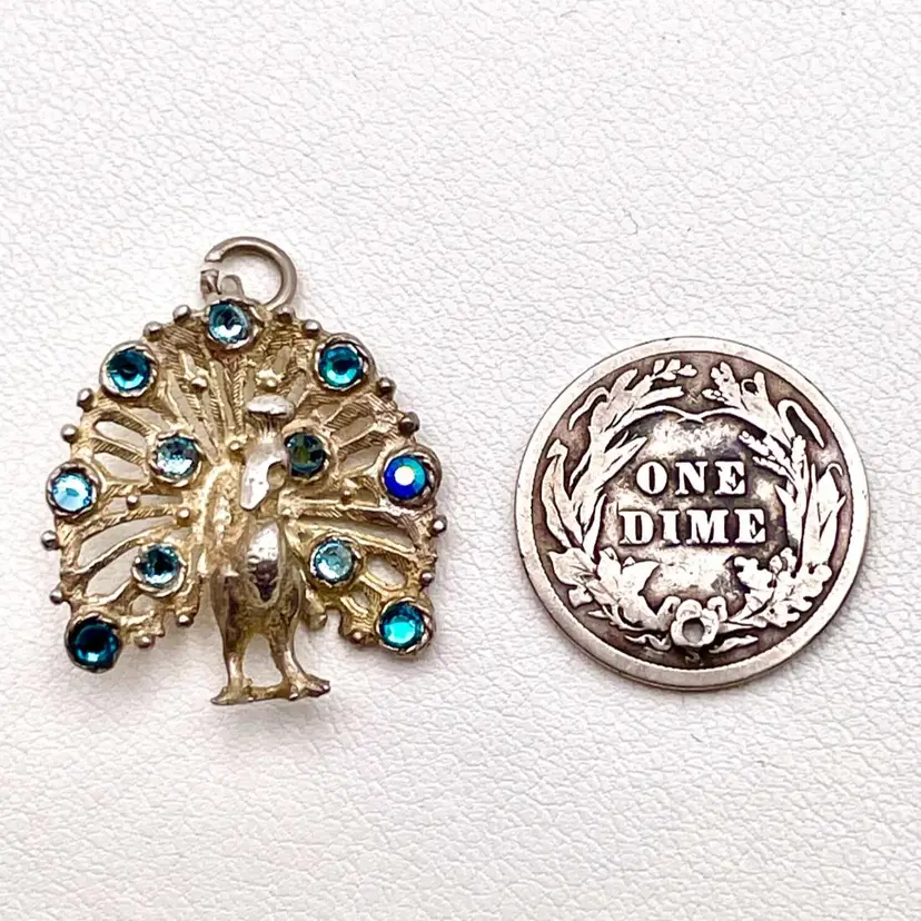 This gorgeous and rare vintage NUVO peacock charm has beautiful blue and green gems. It is hallmarked "NUVO" on the back. The charm is in excellent vintage condition with intricate detail. It is highly sought after and would make a lovely addition to a bracelet or necklace.