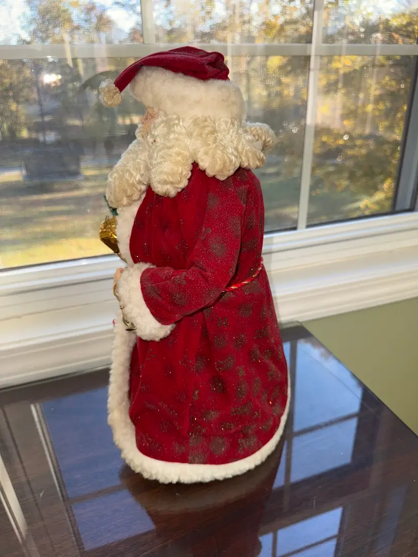 This Large Old World St. Nick Santa Claus Christmas Tree Topper stands at 16 inches tall and is a festive addition to any Christmas tree. Made of velvet and fabric in traditional red colors, this holiday-themed ornament features a classic Santa Claus shape, perfect for celebrating the occasion. As a unique Christmas decoration, this Old World Santa Claus tree topper is sure to bring a touch of holiday cheer to any home during the holiday season.