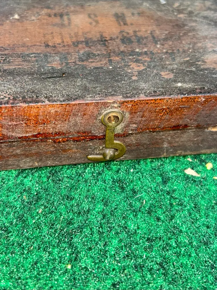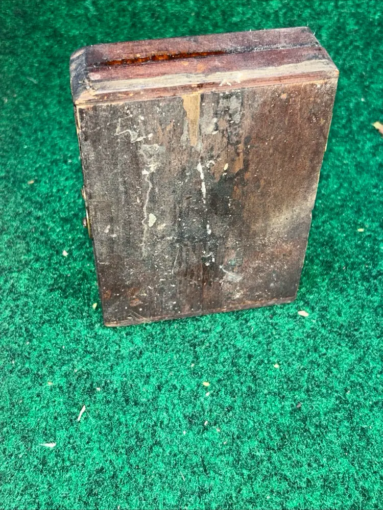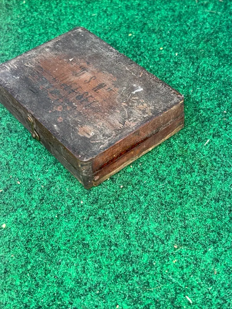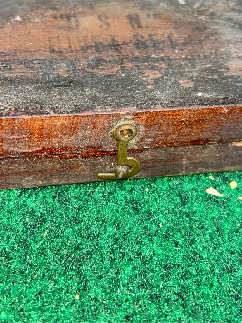 The product is a vintage original WW II era U.S. Navy USN rivet set housed in a wooden case. This collectible item is a piece of militaria history from the United States, specifically representing the period of World War II. The rivet set is an original period item, adding to its historical value and authenticity. Perfect for collectors of military memorabilia and enthusiasts of World War II history, this item offers a unique glimpse into the equipment used during that significant era.
