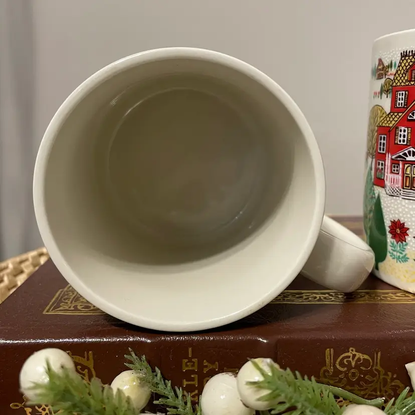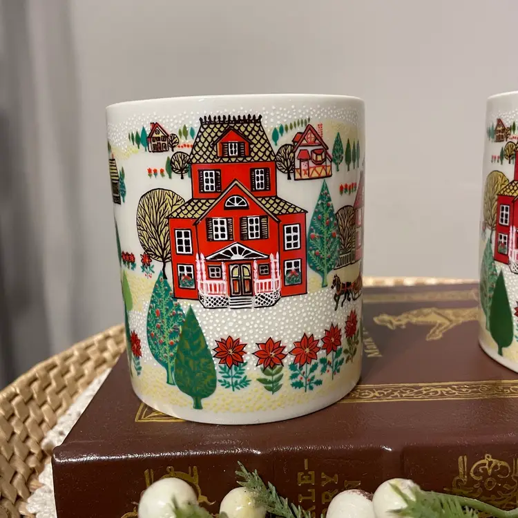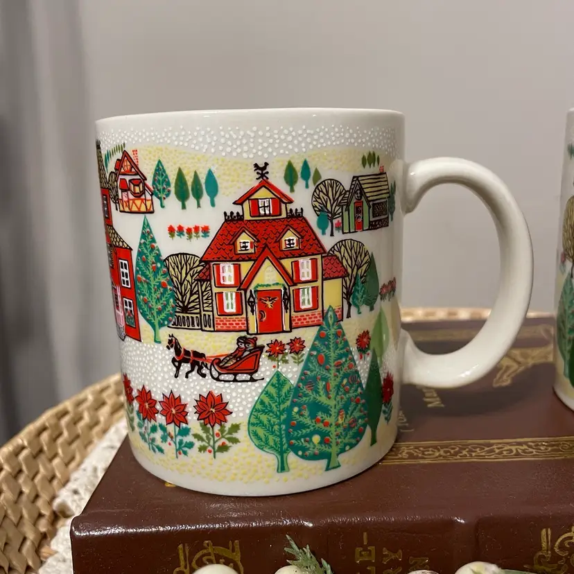 Excellent condition Set of two No chips cracks stains or flaws 3.75” high Christmas/Winter Scene Cottagecore 0000925