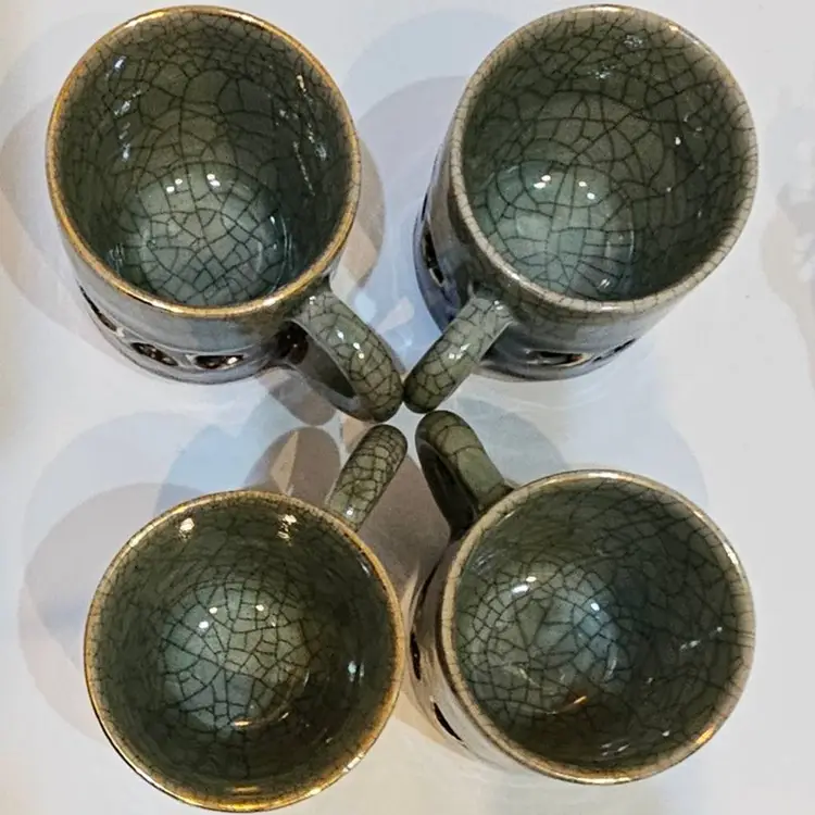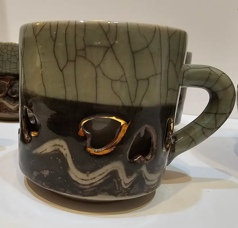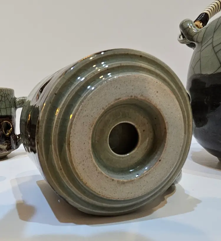 Gray-Green Heart Double Walled treasure. Beautifully handmade piece originating from Japan. Gold detail. No chips or cracks; in perfect condition.