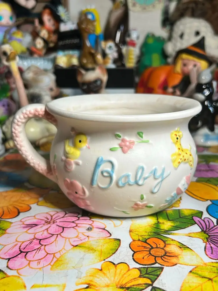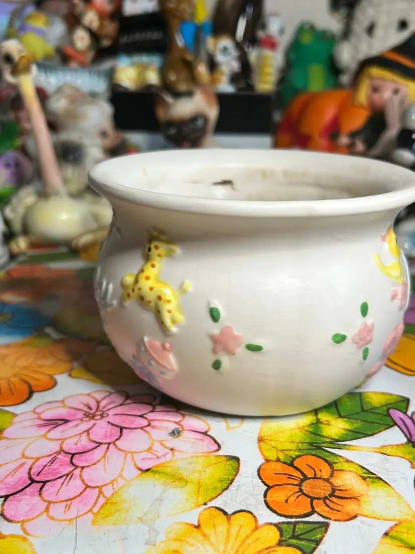 For sale! Vintage Pastel Cute Nursery Cup Planter. 3 inches x 6. Some crazing.