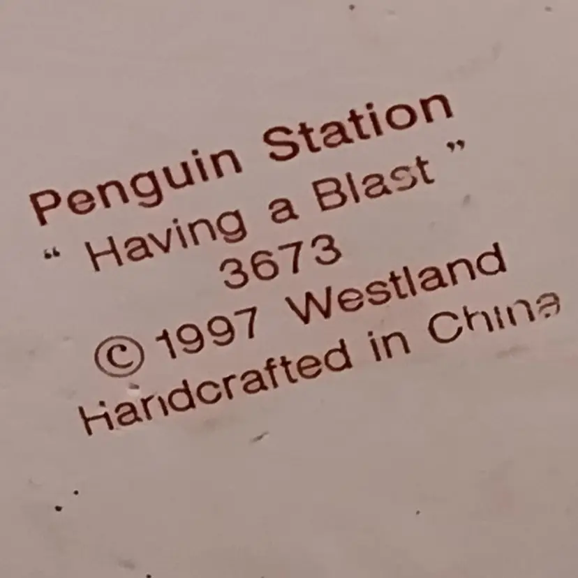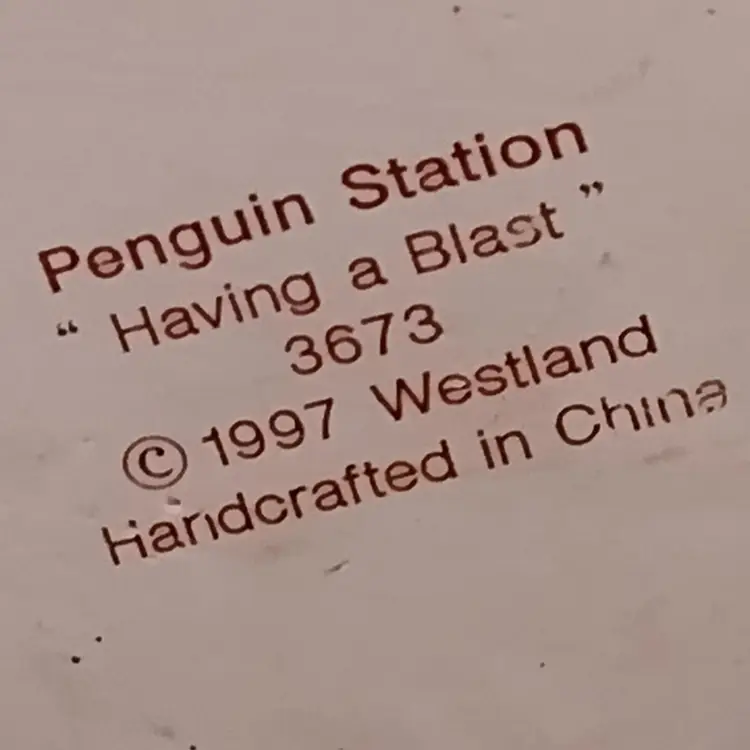 This vintage Westland China figurine features a playful penguin having a blast in the snow. Crafted in 1997 by Westland, this medium-sized figurine is a perfect addition to any collection. The intricate details and original design make it a must-have for collectors of all occasions. The figurine is an original piece from China and is sure to bring a smile to your face. Its unique design and quality construction make it a great decorative piece for any room. Add this Westland China penguin figurine to your collection today!