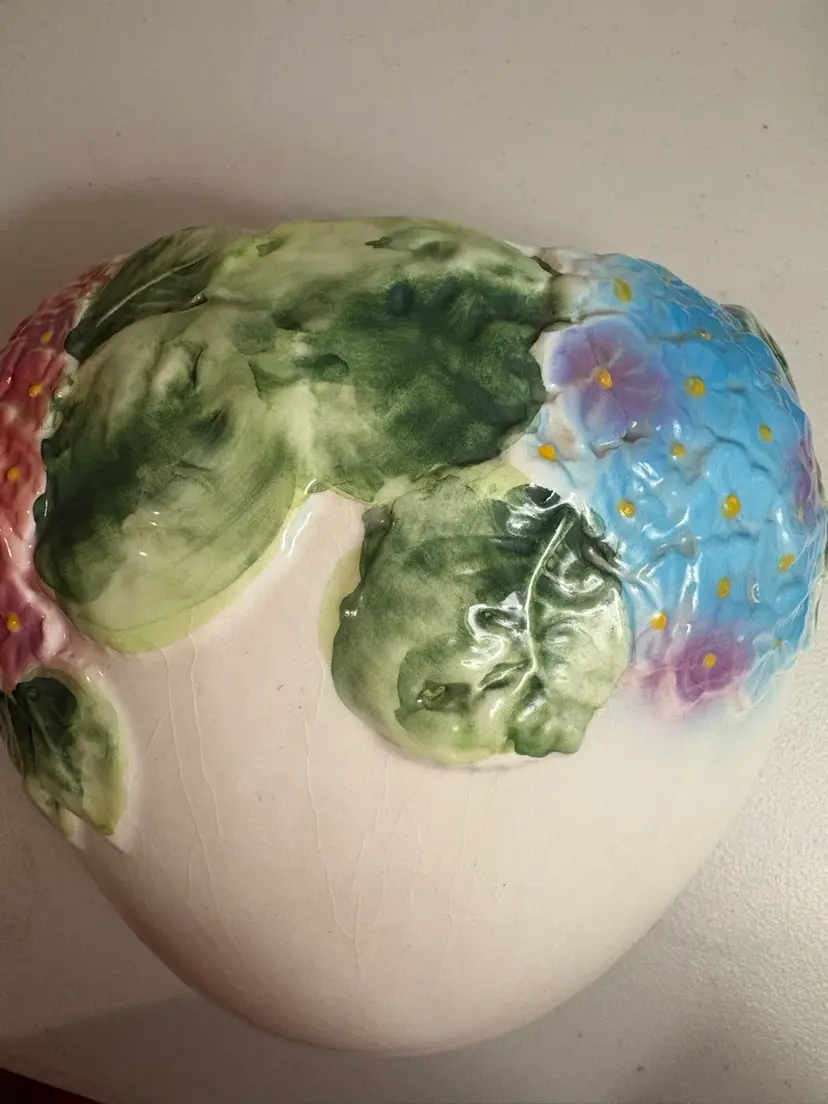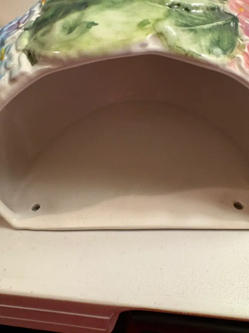 This Vintage Pier 1 Imports Ceramic Floral Wall Pocket Vase is a charming addition to any indoor space. Made of ceramic with a beautiful floral pattern, this wall vase serves as both a decorative piece and a functional planter. The hanging design adds a touch of elegance to your home décor, making it a unique and stylish choice for showcasing your favorite plants or flowers. Perfect for adding a touch of vintage flair to your living room, bedroom, or kitchen.