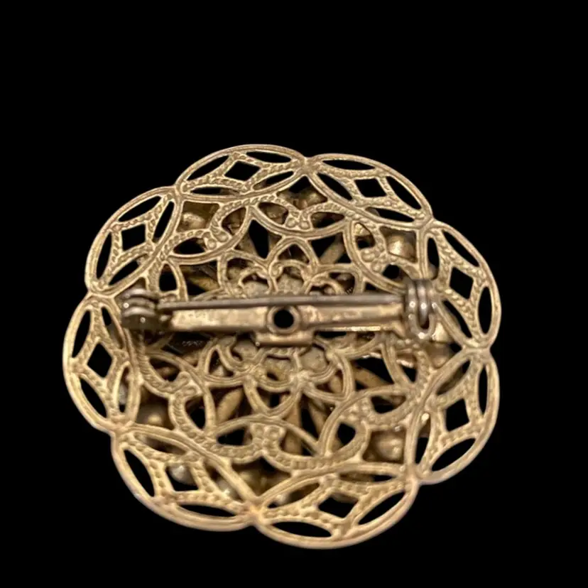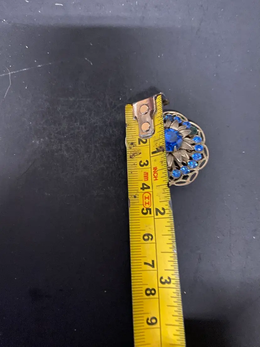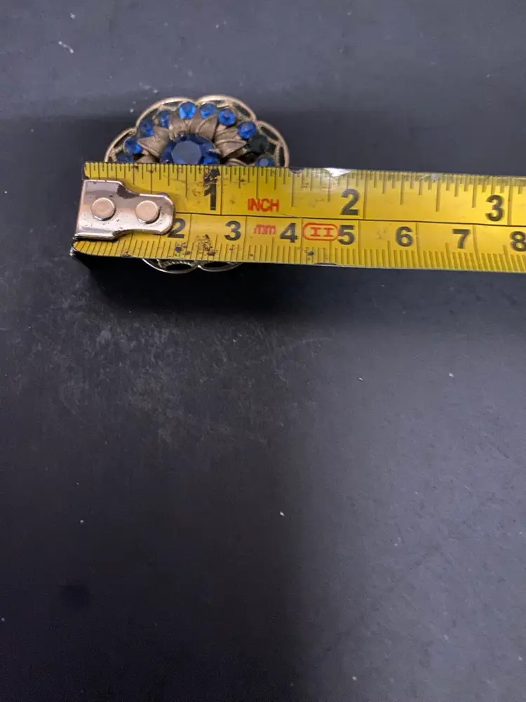 Vintage Brooch Blue Rhinestone Gold Trim
