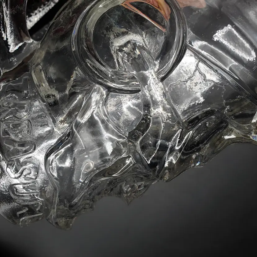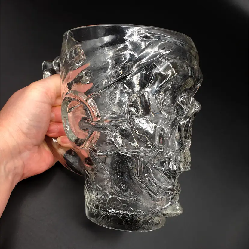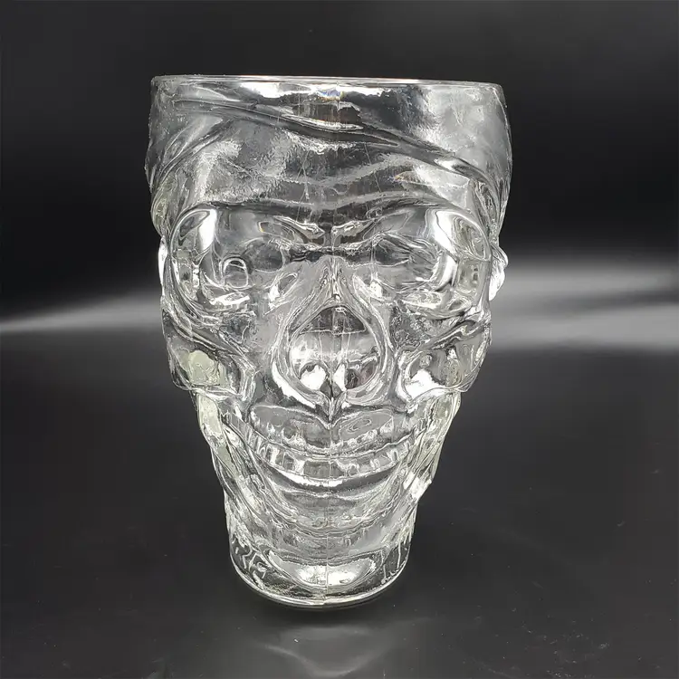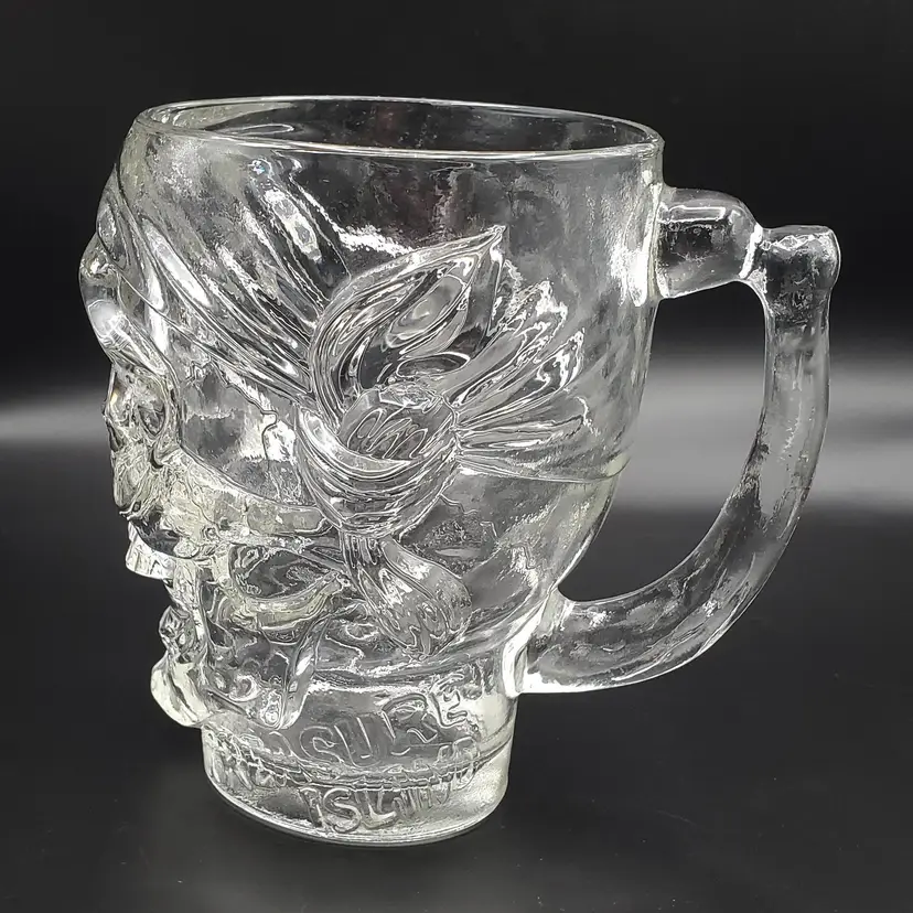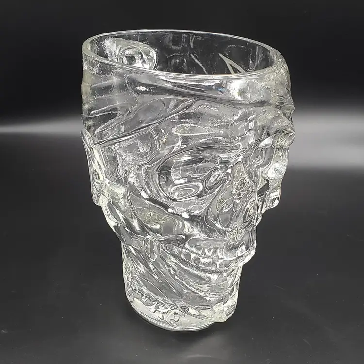 This heavy glass stein stands 6.5" tall. There is a lot of detail in the skull form as you examine the glass. It works as a casino souvenir, a Halloween accessory or for the many who love collecting skulls in general. It makes for impressive barware too. Thanks for looking!