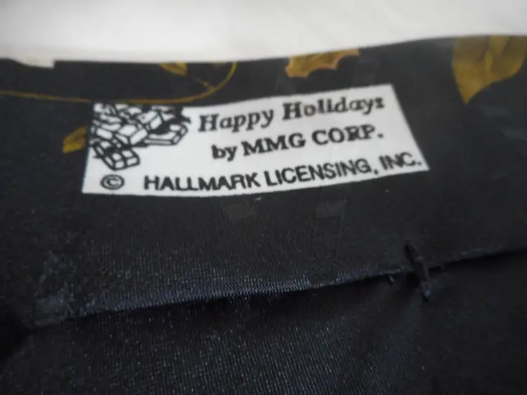 Vintage Poinsettia White Red on black floral Holiday Winter tie necktie