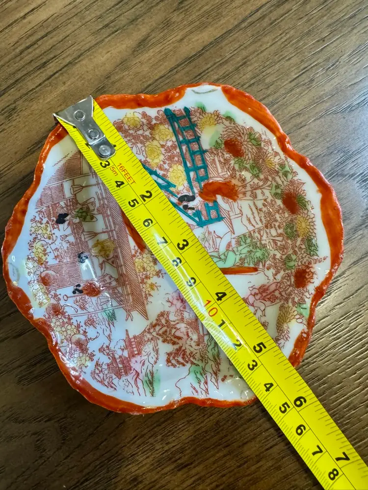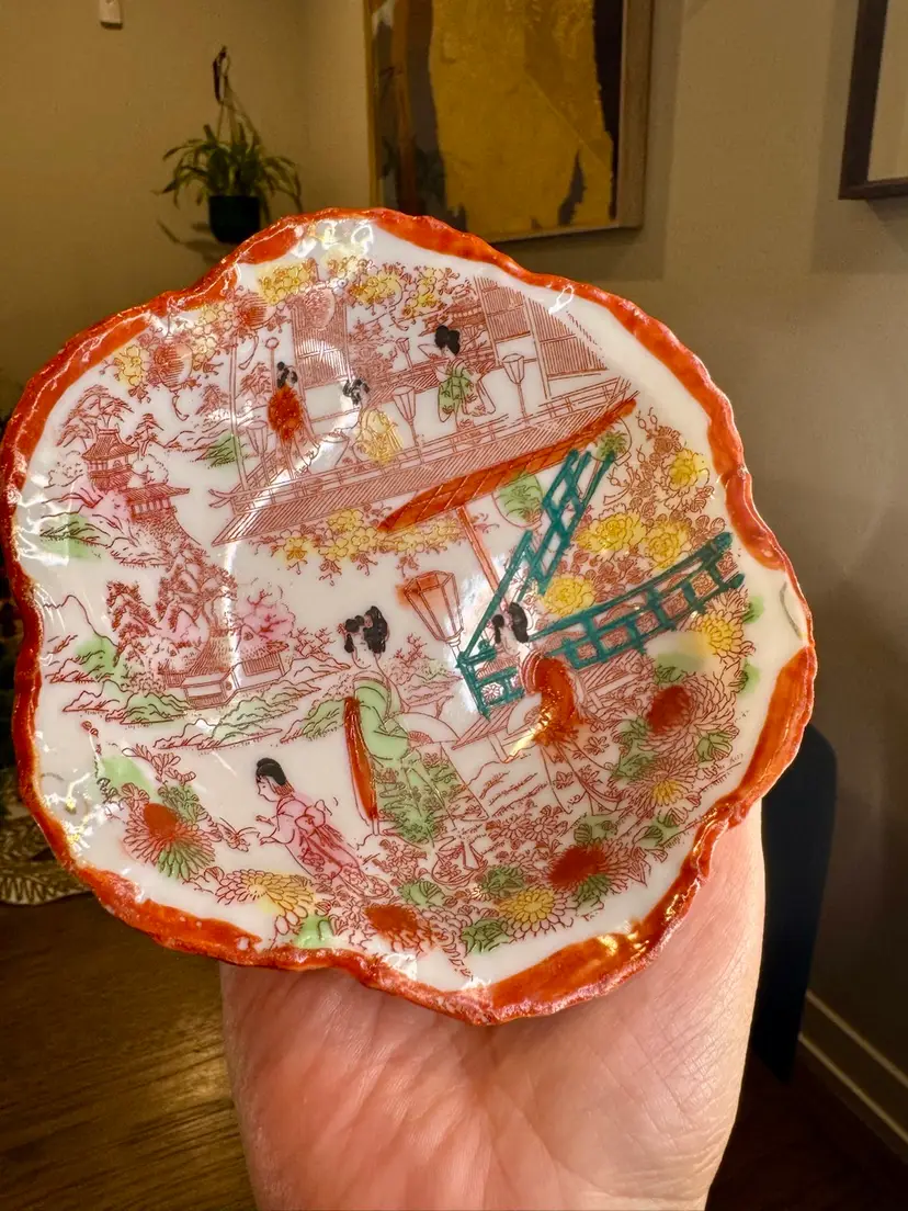 vintage Japanese porcelain bowl, often referred to as "Geisha Girl" ware. This type of porcelain is characterized by its hand-painted decoration of ladies in kimonos, often in garden or pagoda scenes.