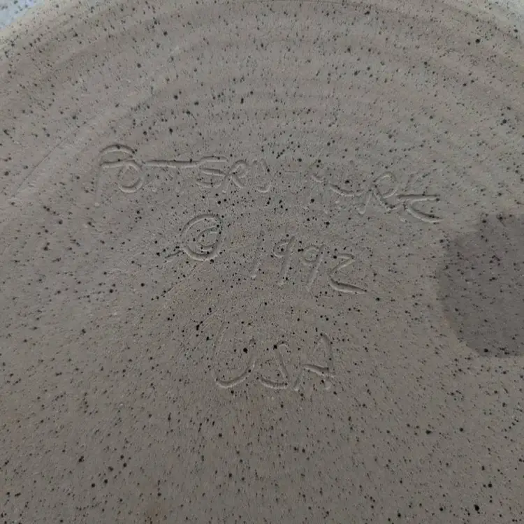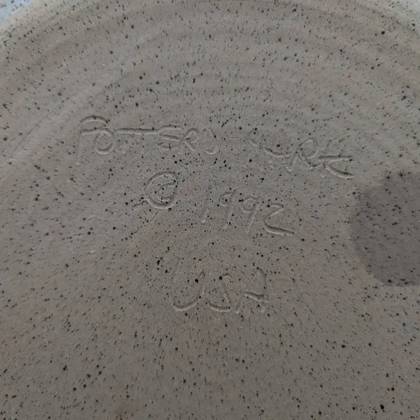This is a beautiful handcrafted pottery plate- featuring a biblical saying, and a farmer doing earth work. The plate has a decorative banding and the characters in a nice shade of blue. The base is a speckled ivory that complements the blue. Measures: 10.25 inches in diameter. Made in Pennsylvania with high quality clay material. Add a touch of American style in your home.