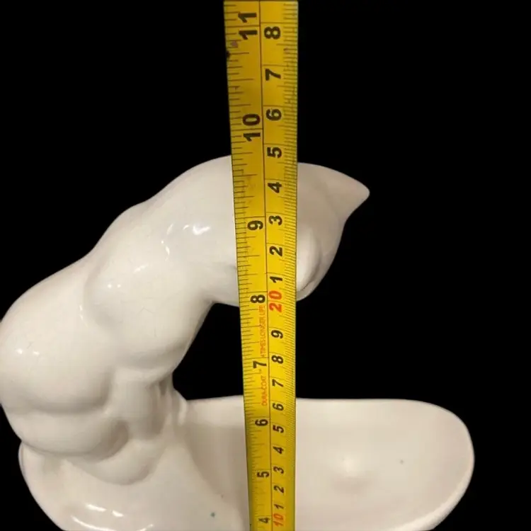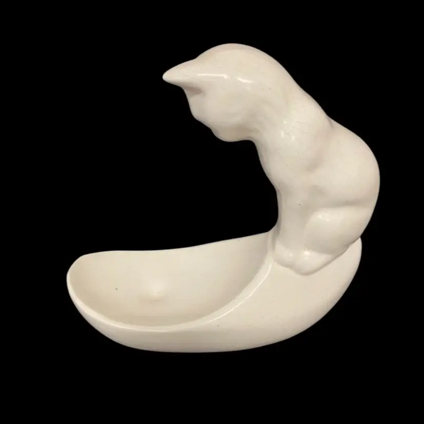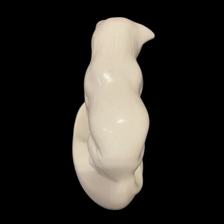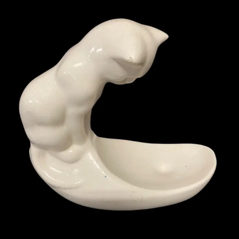 Vintage Pottery White Cat . Fish Bowl Stand . Great Condition, Measurements In Pictures