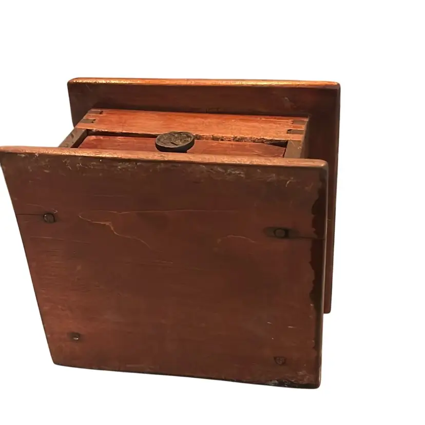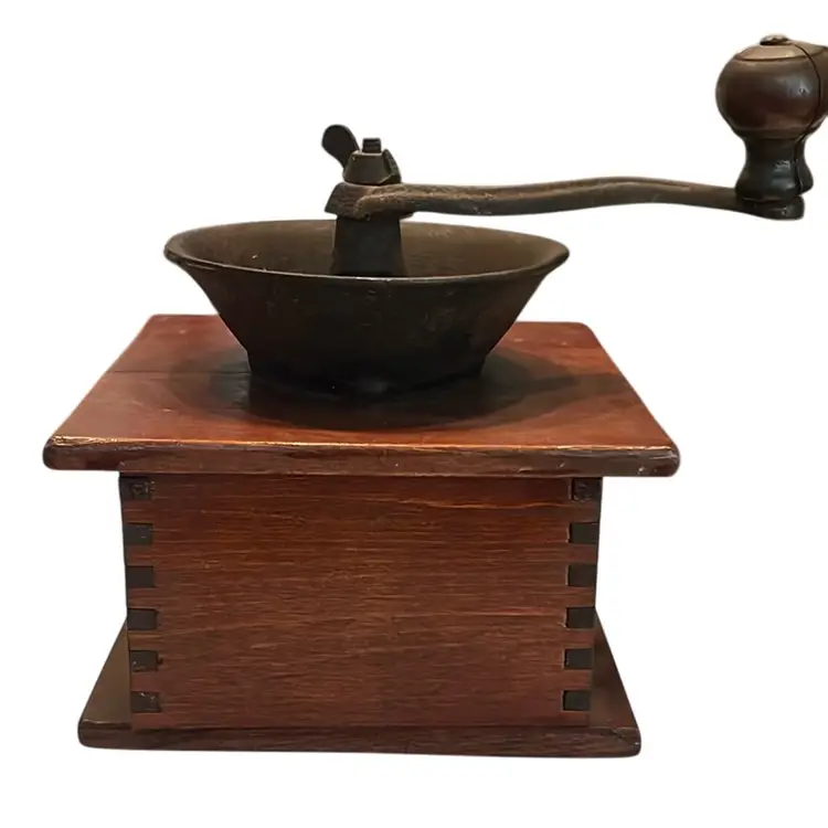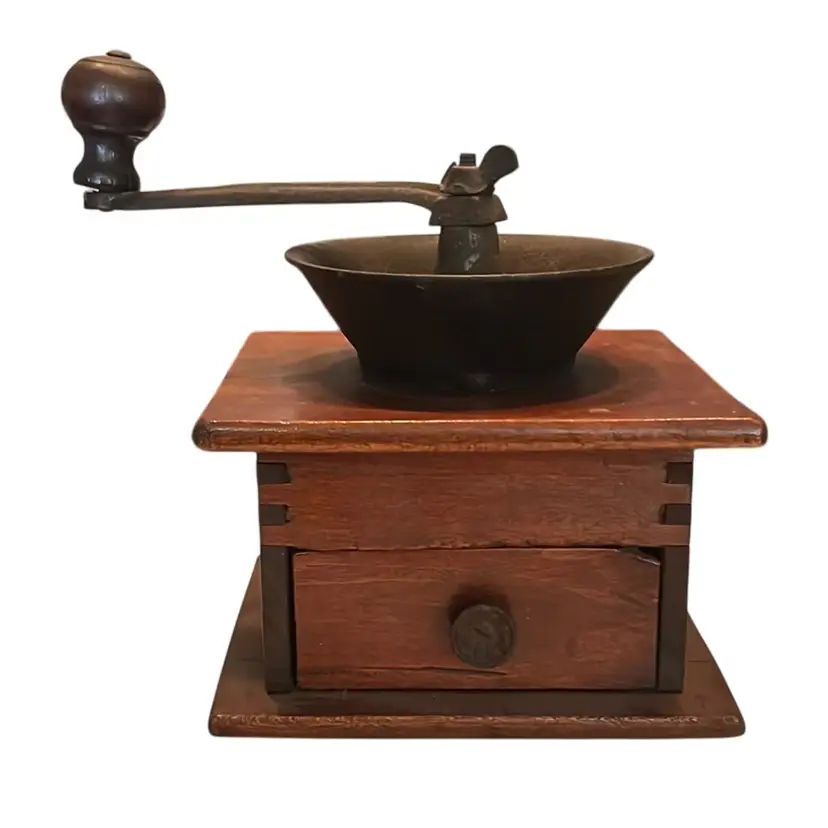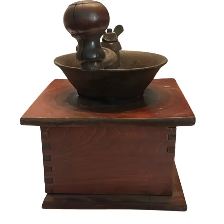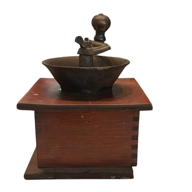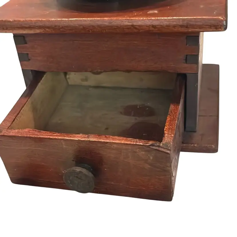 Old dovetail construction coffee grinder, old damage show in picture on drawer 7.5” to top of handle
