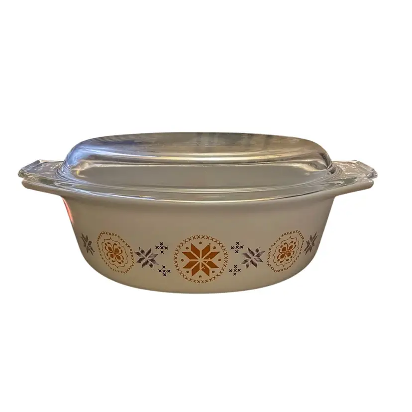 Vintage Pyrex USA Town & Country Oval 1 1/2 Qt Casserole Baking Dish w/Lid #043 Condition is Used. Shipped with USPS Mail