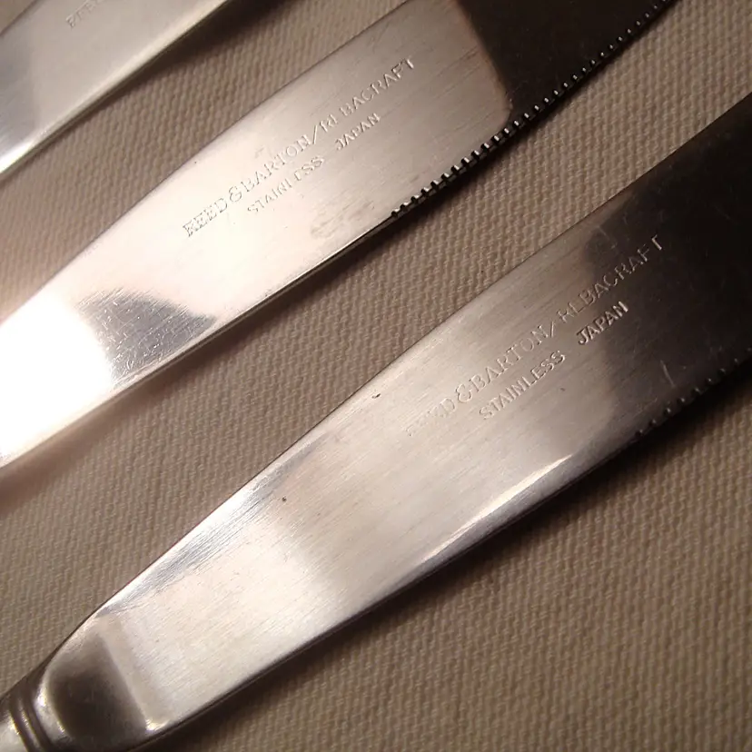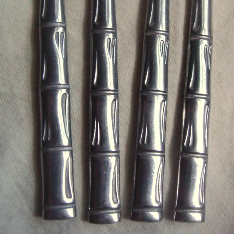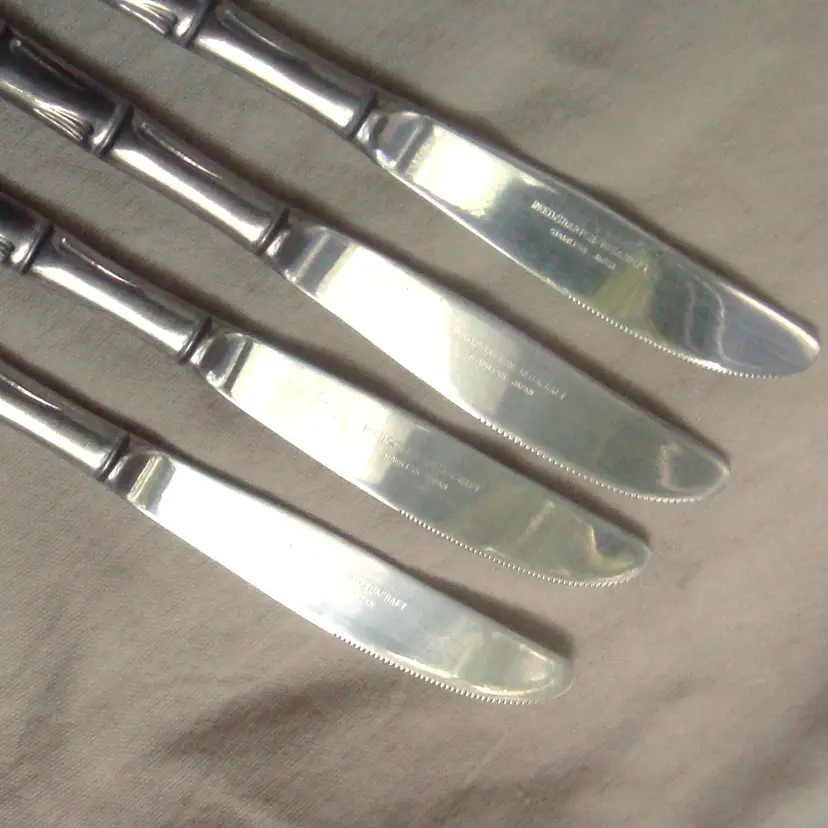 Reed&Barton stainless steel flatware, Made in Japan. Discontinued Bamboo pattern. Pre-loved with some age appropriate wear. 1960s?