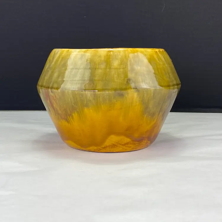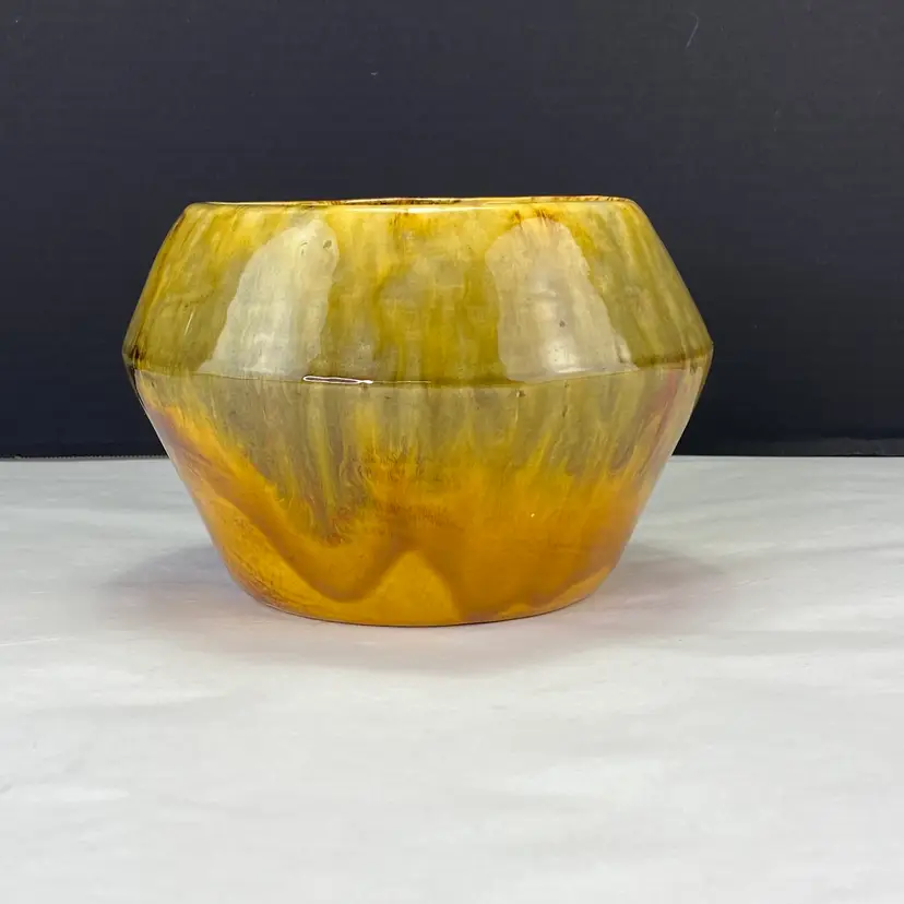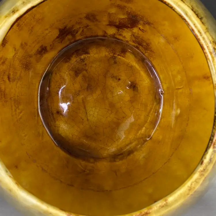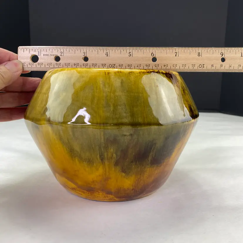 Vintage Retro Gold Green Glaze Pottery Planter Flower Pot