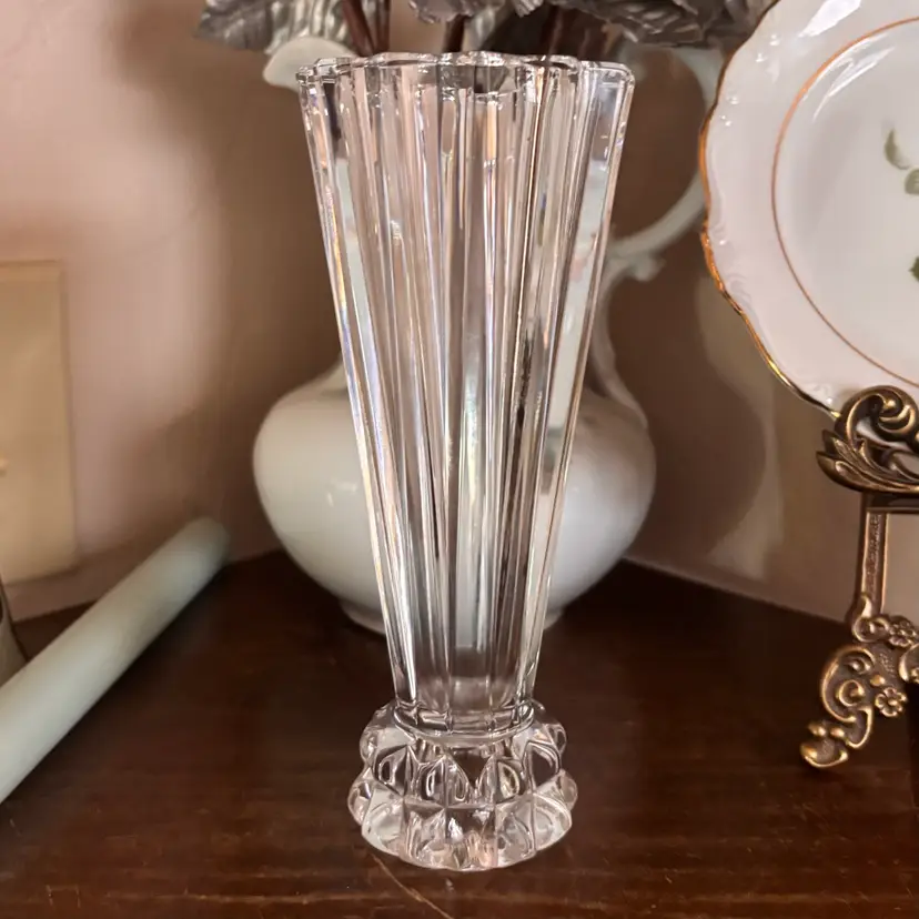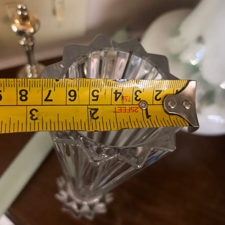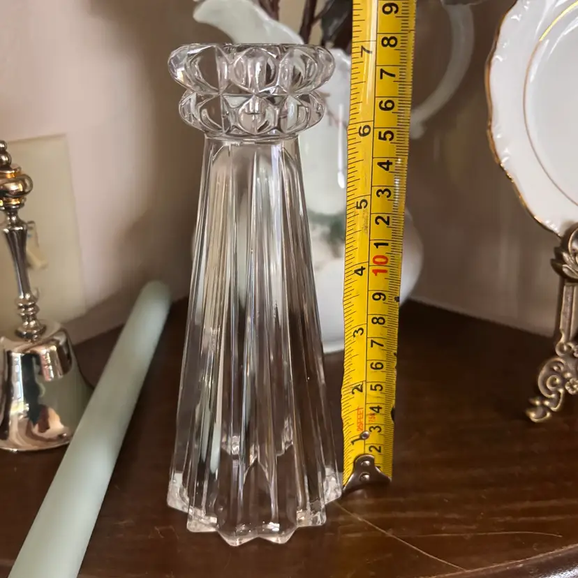 Stunning crystal vase/candle holder 7”tall x 2 3/4”at base Vintage wear as shown- no chips or cracks Perfect condition!