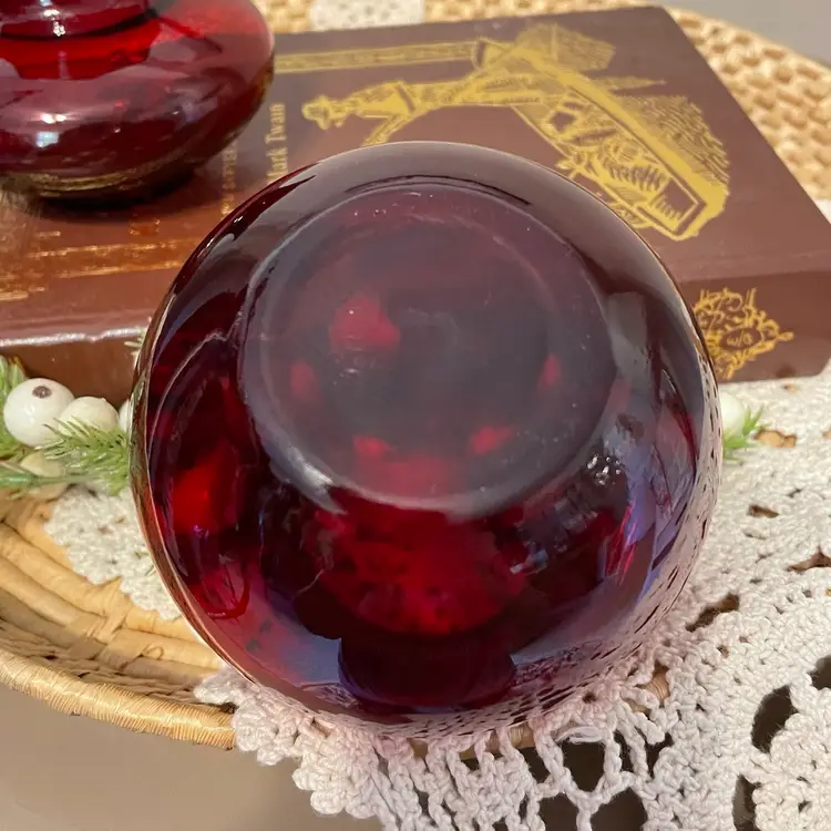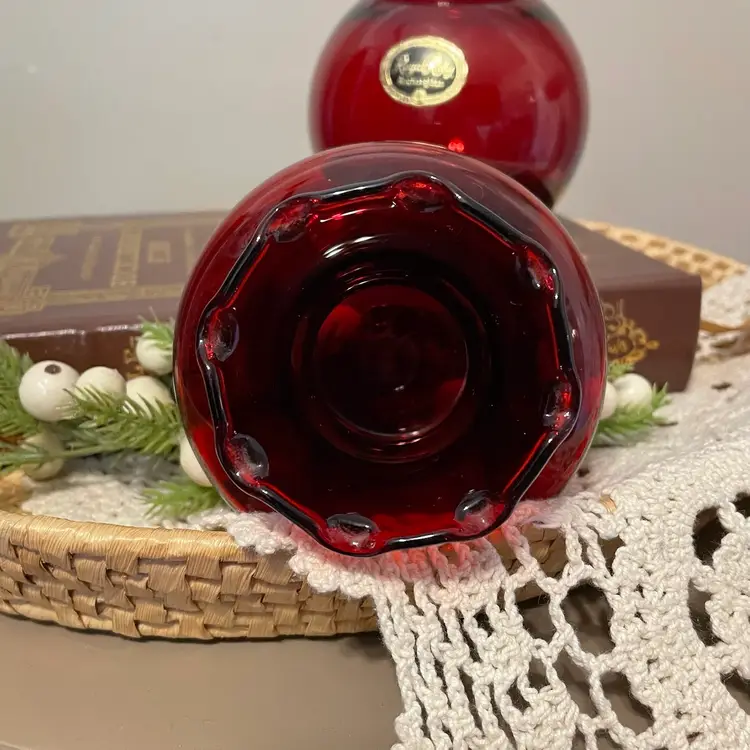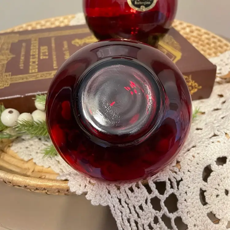 Excellent condition No cracks chips or flaws Beautiful Ruby glass Anchor Hocking Glass Lancaster Ohio 3.5” and 4” high Set of two 0000925