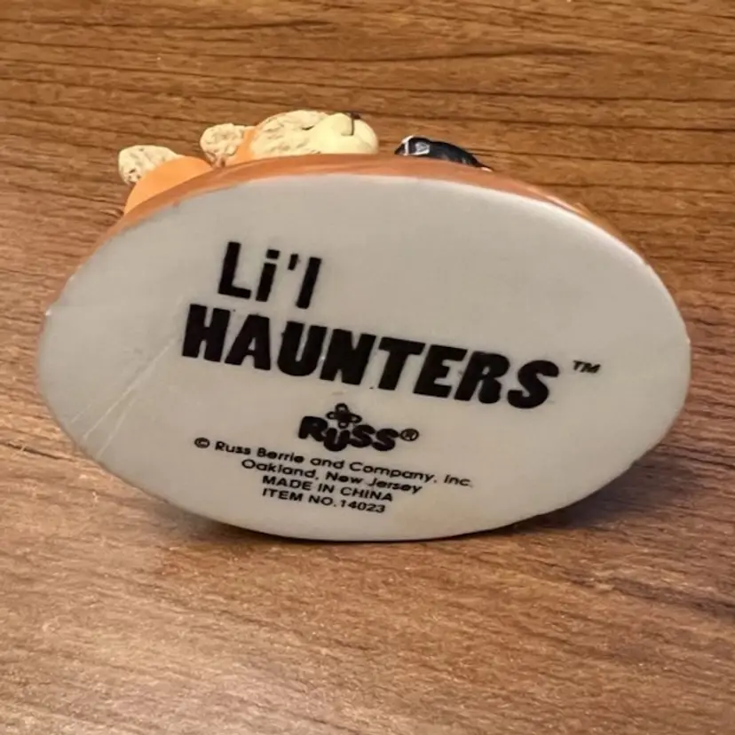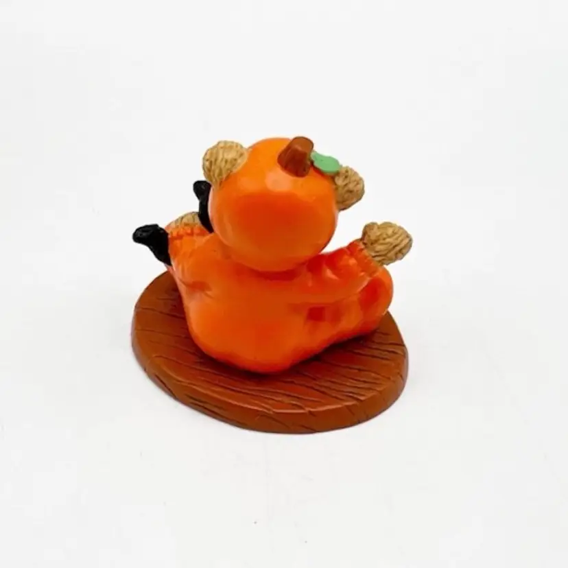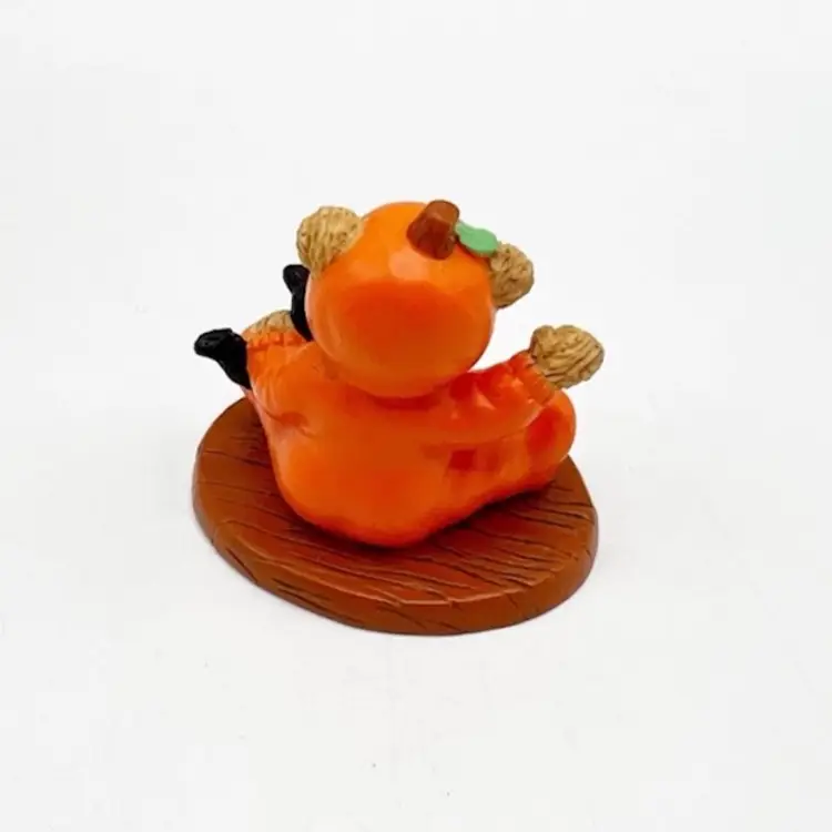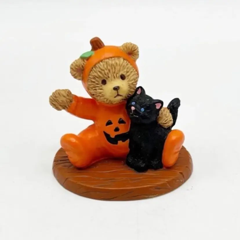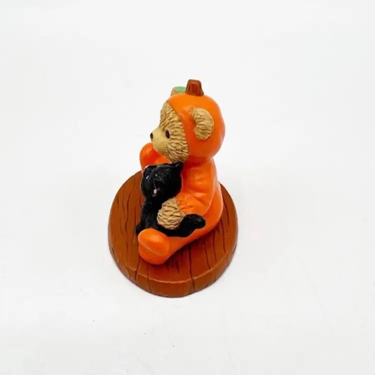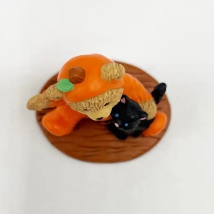 Vintage Russ Lil Haunters Teddy Bear Pumpkin Black Cat Halloween Figurine 2.75"