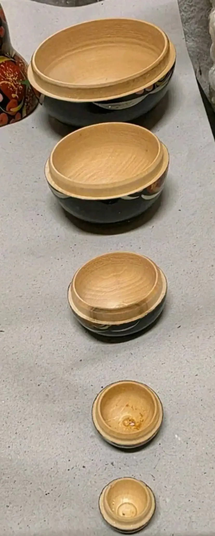 Largest doll measures 5 inches tall.