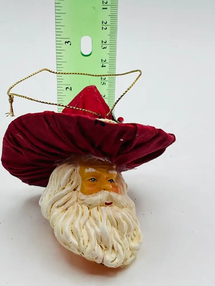 This vintage blow mold ornament is the sweetest Santa cowboy face. He is in good vintage condition. Santa would look adorable on any vintage or cowboy themed Christmas tree.