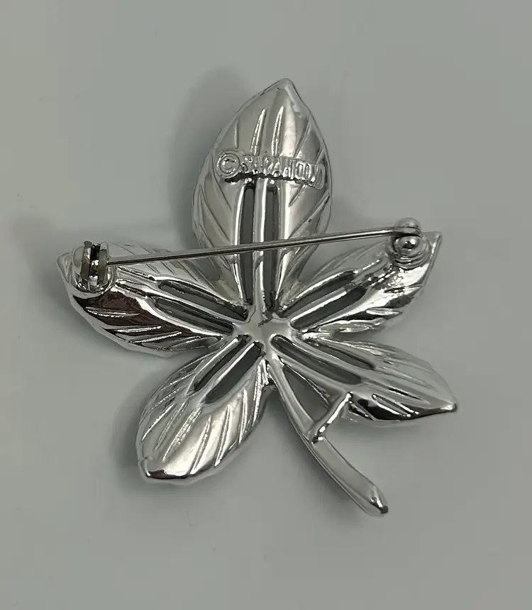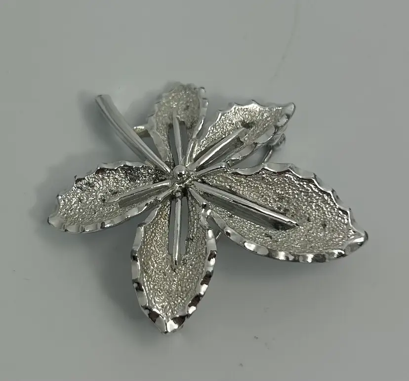 Has tarnish spots in textured area on front. Clasp intact and functional.