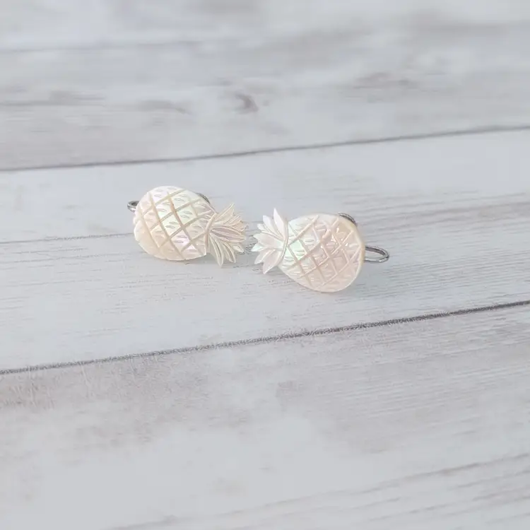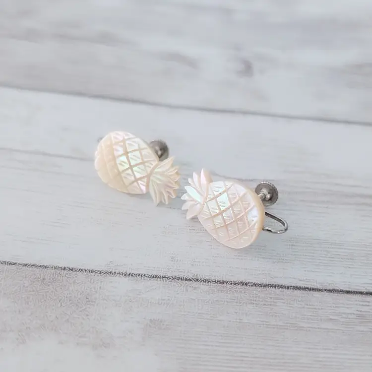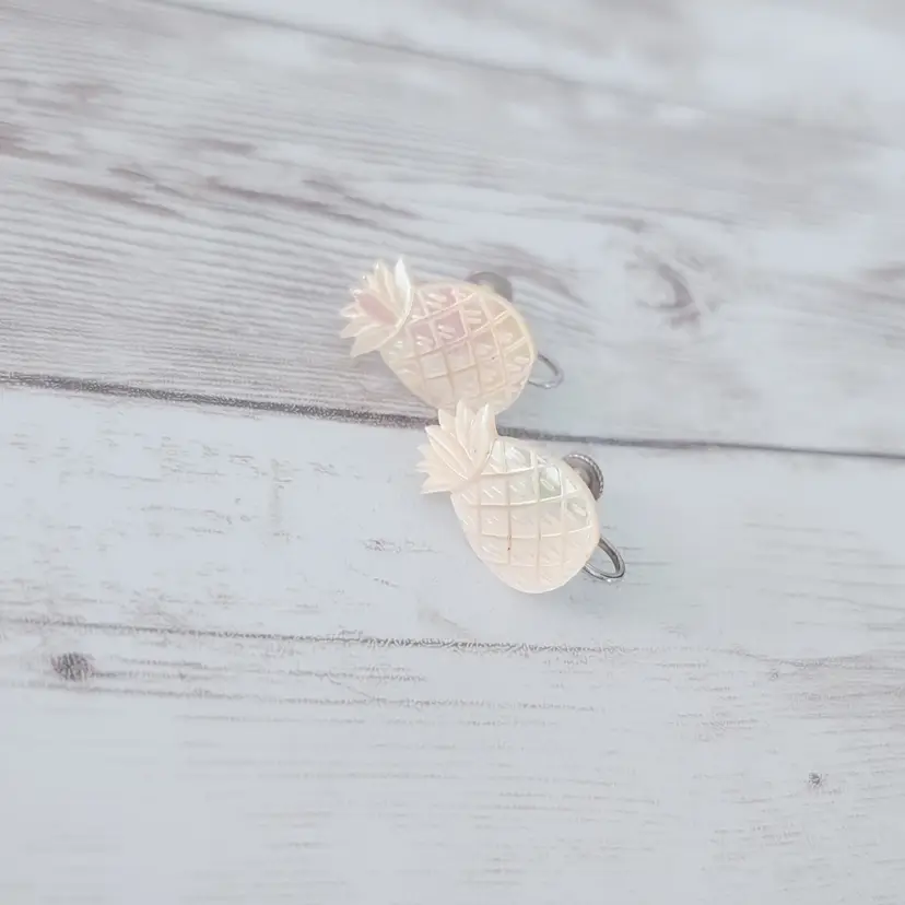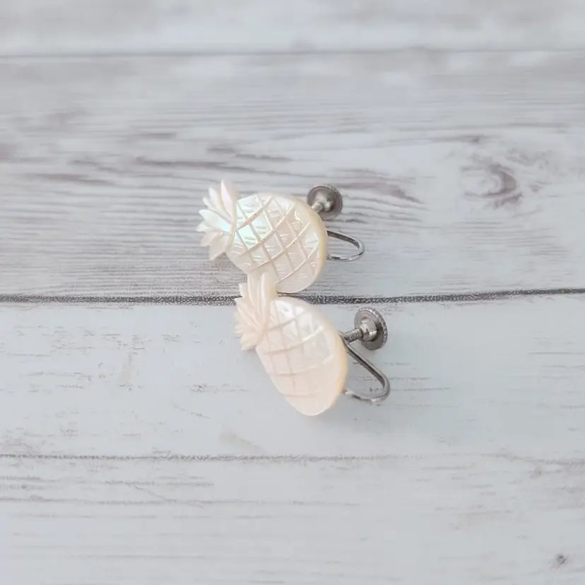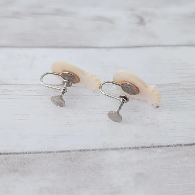 Vintage Screw On Earrings Cream Pineapple with Slight Iridescence